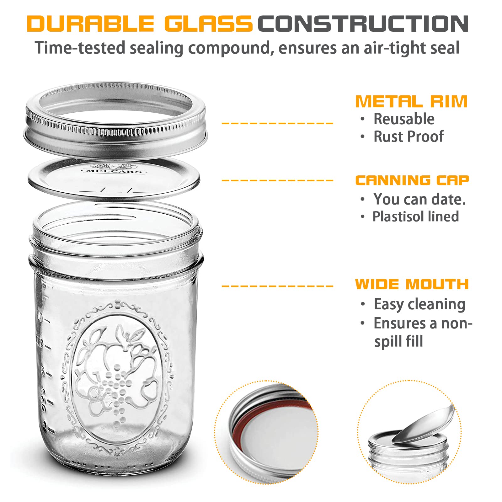 💎【Best Choice】Our mason jar set perfect for canning, pickling, preserving, and fermenting fruits and veggies. Our jars come with embossed measurement markings for precise filling and lid with label line for writing the date and identifying the content and accompanied by a sticky note and marker for easy remarks on the can. This is an essential canning supplies.