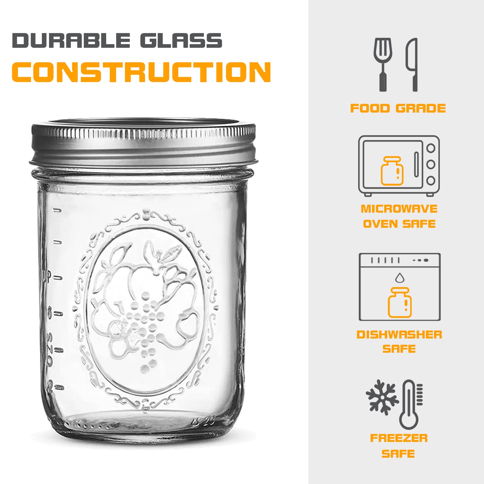 💎【Widely Used】Our 16 oz mason jars can meet most of your canning food making and storage and DIY needs. You can use the jars to make jams, puddings, salads, drinks, pickles, sauerkraut, sauces and store all kinds of foods you want to store. You can also use these mason jars to give full play to your creativity and use them for DIY projects, home decoration, etc.