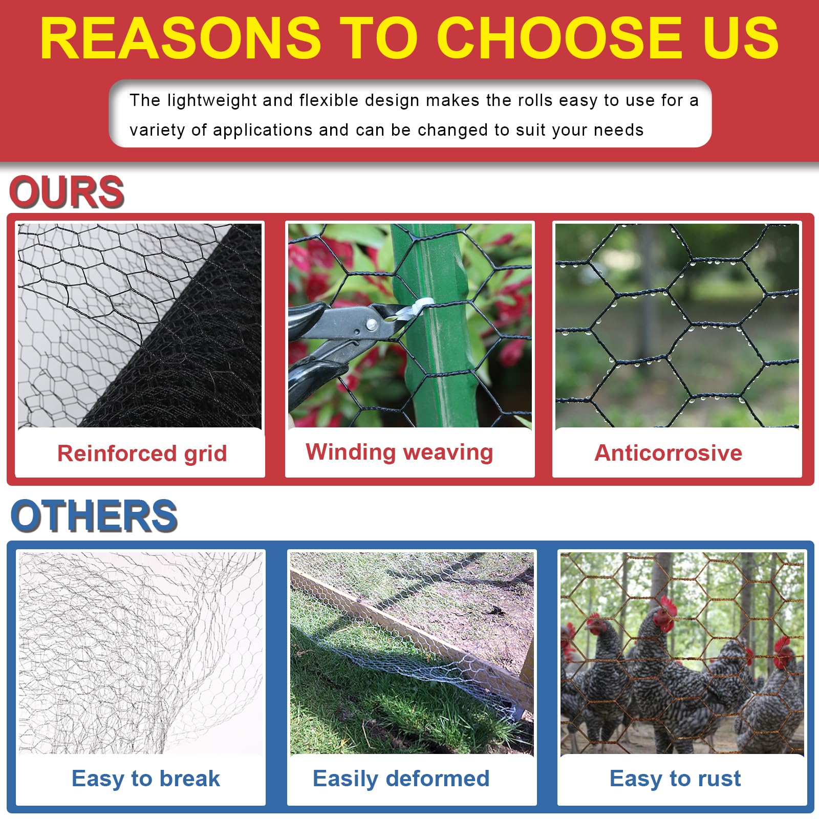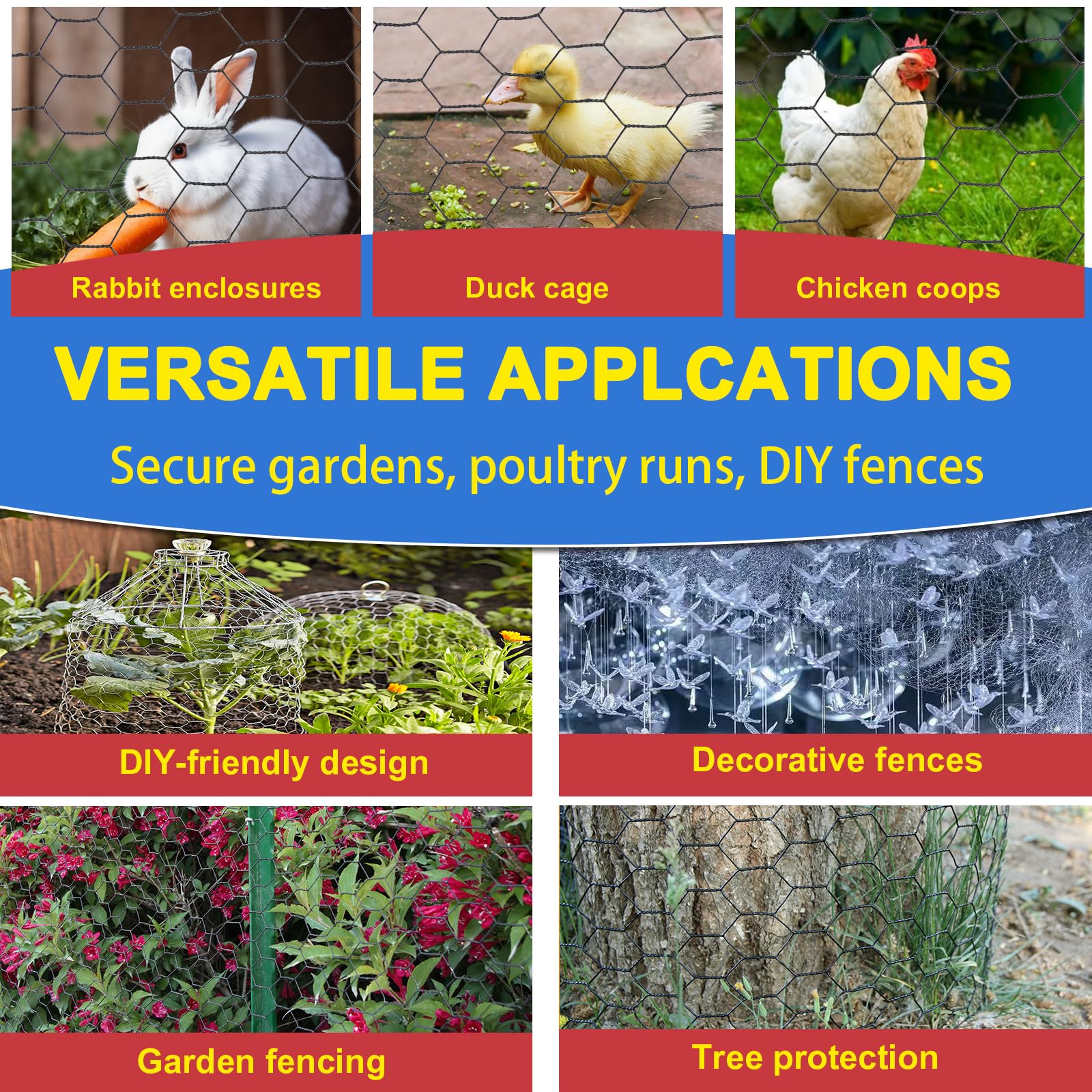 đăEasy-Cut 36-Inch Chicken Wire RollăTrim with scissors and bend to any shape! This 24-inch chicken wire roll fits irregular coops, gardens, or balconies. Lightweight yet durable, available in vinyl-coated (including black chicken wire) for weather resistance. No skills neededâperfect for DIYers.