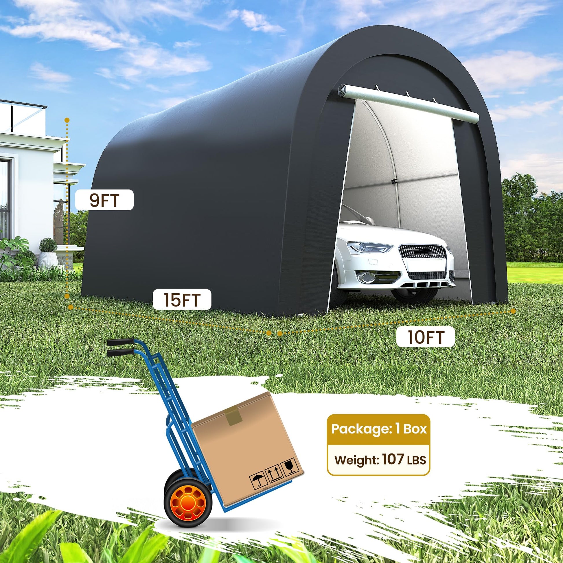 Wisteria Lane Domed Carport, Portable Garage with 2 Roll up Doors, Heavy Duty Car Canopy Party Tent, All-Season Storage Shelter Shed Carport for Motorcycle, Boat, Truck, or Garden Tools, 10' x 15'