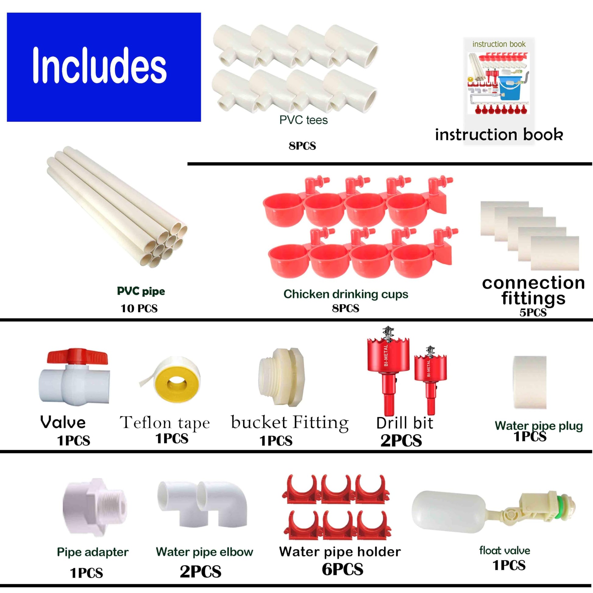 【Chicken Water Feeder】This is a complete poultry automatic drinking Water system with PVC water pipe, only need to prepare some extra PVC glue, you can build a complete set of Chicken automatic drinking water system