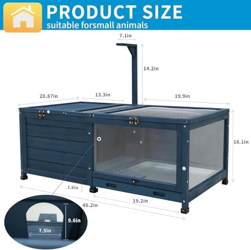TORTOISE HABITAT: The large tortoise enclosure house wooden is with dimensions of 40.2*20.87*16.1 inches and a door size of 9.6*7.5 inches, this tortoise habitat turtle enclosure provides ample space for raising multiple small animals, such as rabbits, tortoises, lizards, snakes, turtles, hamsters, and quail, making it a versatile indoor enclosure for breeders