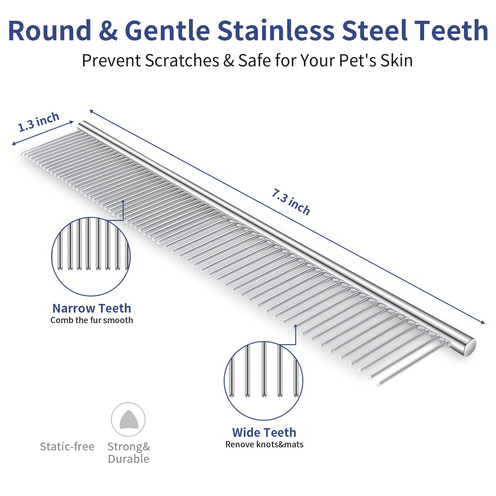 [GENTLE & EFFECTIVE] Achieve gentle grooming and deshedding with a self cleaning slicker brush, rounded teeth rake, and comb. Soft bath head for tangle-free hair. Perfect for sensitive pets. Ergonomic design for comfort and control.