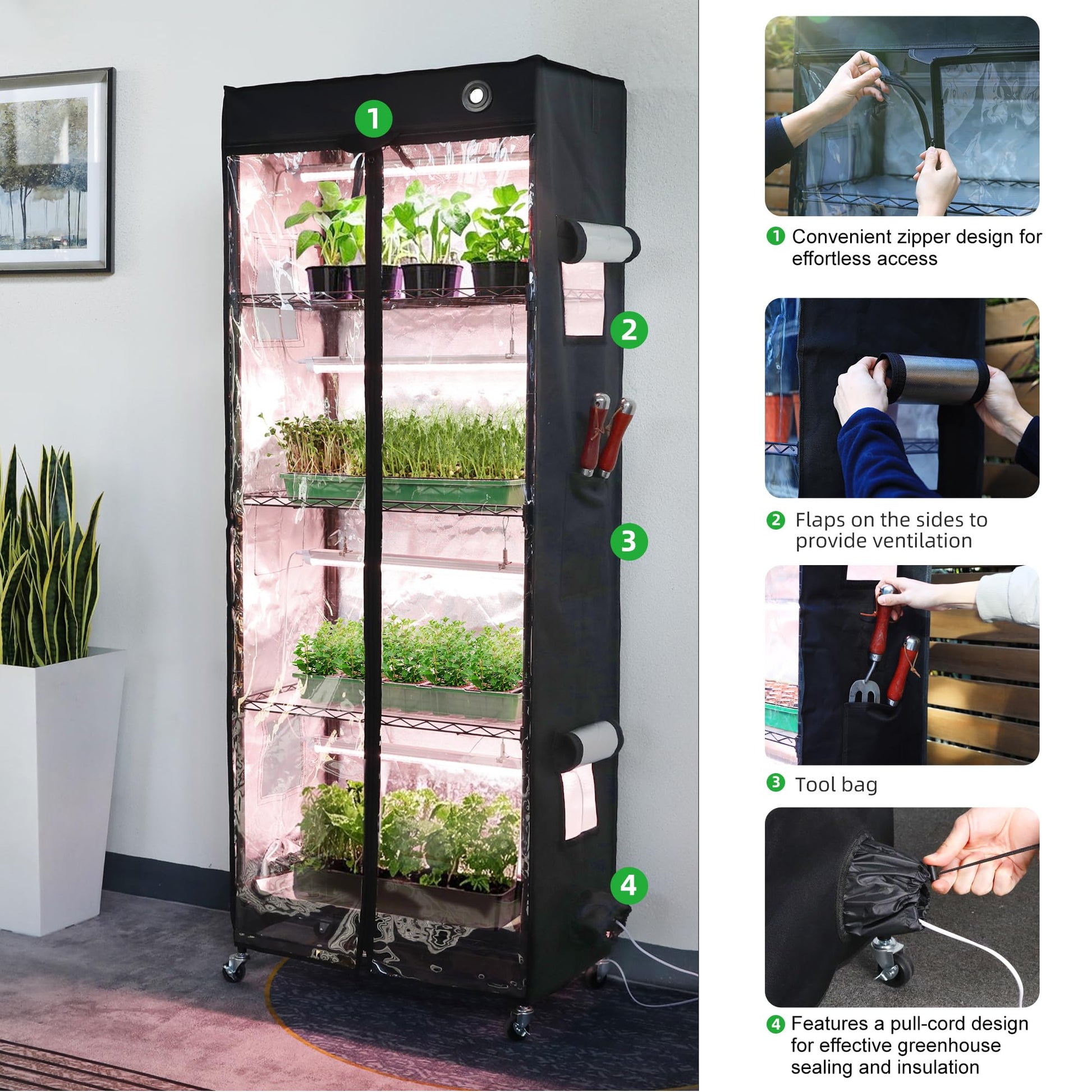 Portable, Easy to Assemble & Dual Installation Options – This compact greenhouse is quick to set up and fits indoors, balconies, and small gardens. It includes both leveling feet and caster wheels, letting you choose between stable placement or easy mobility to suit your gardening needs.