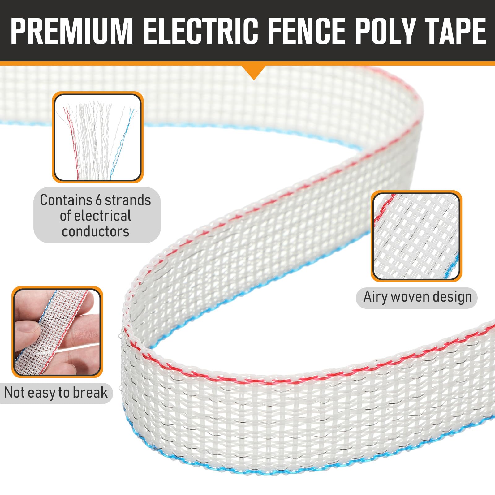 High Visibility Electric Fence Tape: the set includes electric fence for horses, effectively deterring livestock from approaching the fence; Suitable for portable and semi permanent electronic fencing, the visibility feature enhances safety and containment for animals