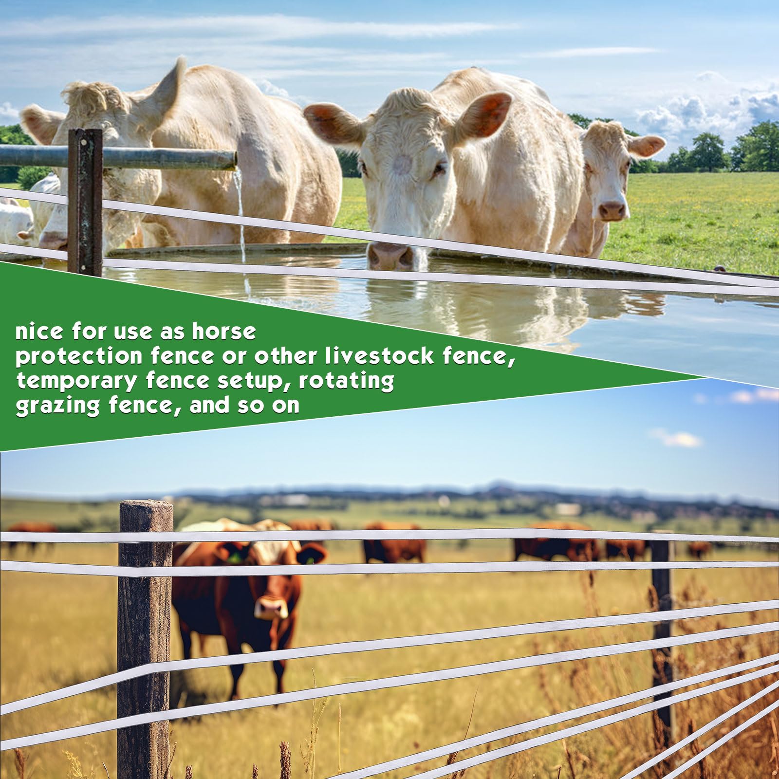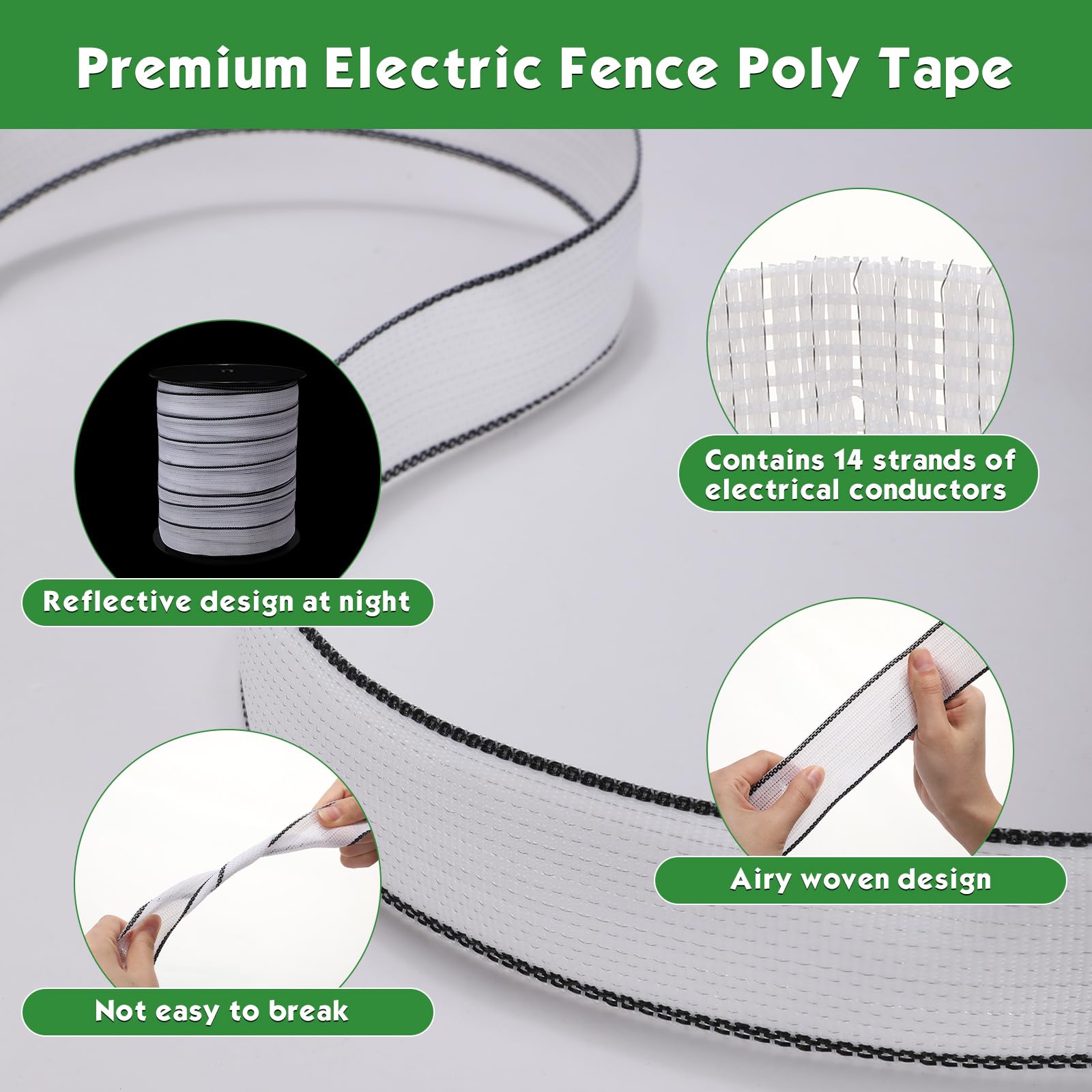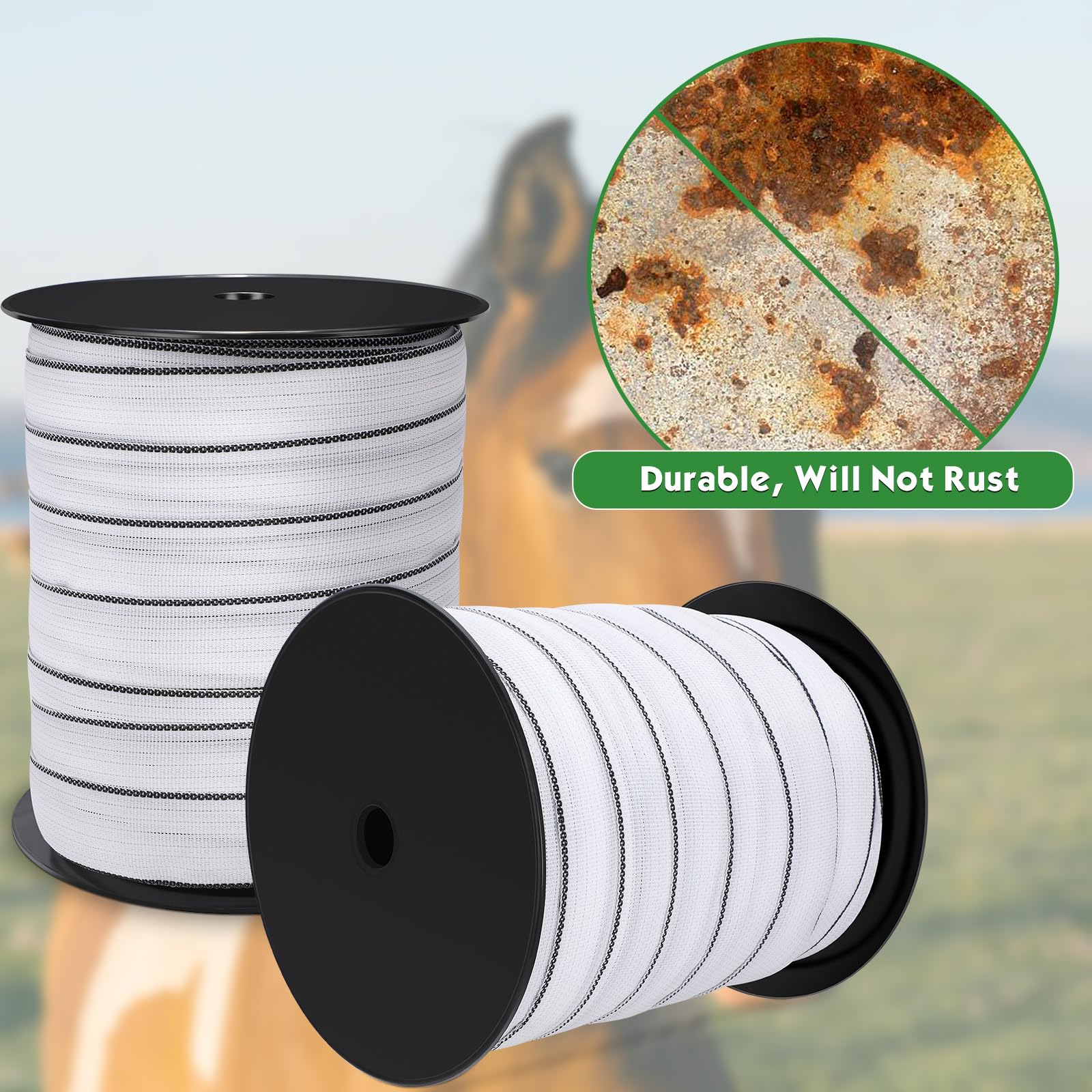 Reliable Quality: electricfence tape for livestock is made of PE material, contains 14 strands of electrical conductors, has a breaking load of 890 lbs, will not break easily, is easier to install and repair than ordinary wiring, and will not rust