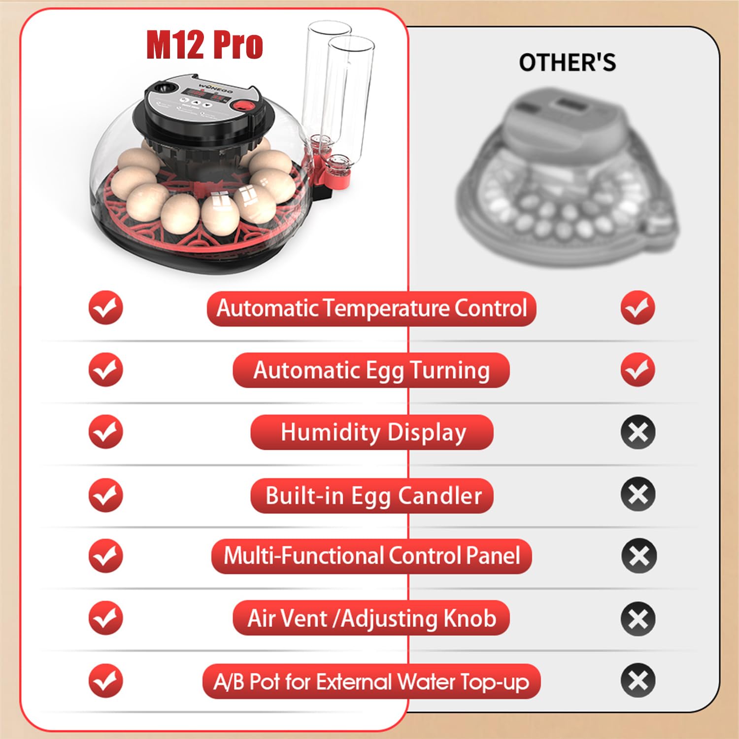 WYD2ANG Smart Chicken Incubators for Hatching Eggs with Automatic Turner Small Poultry Duck Quail 12 Egg Incubator Temperature Control Display Hatcher Machine (M12 Pro)