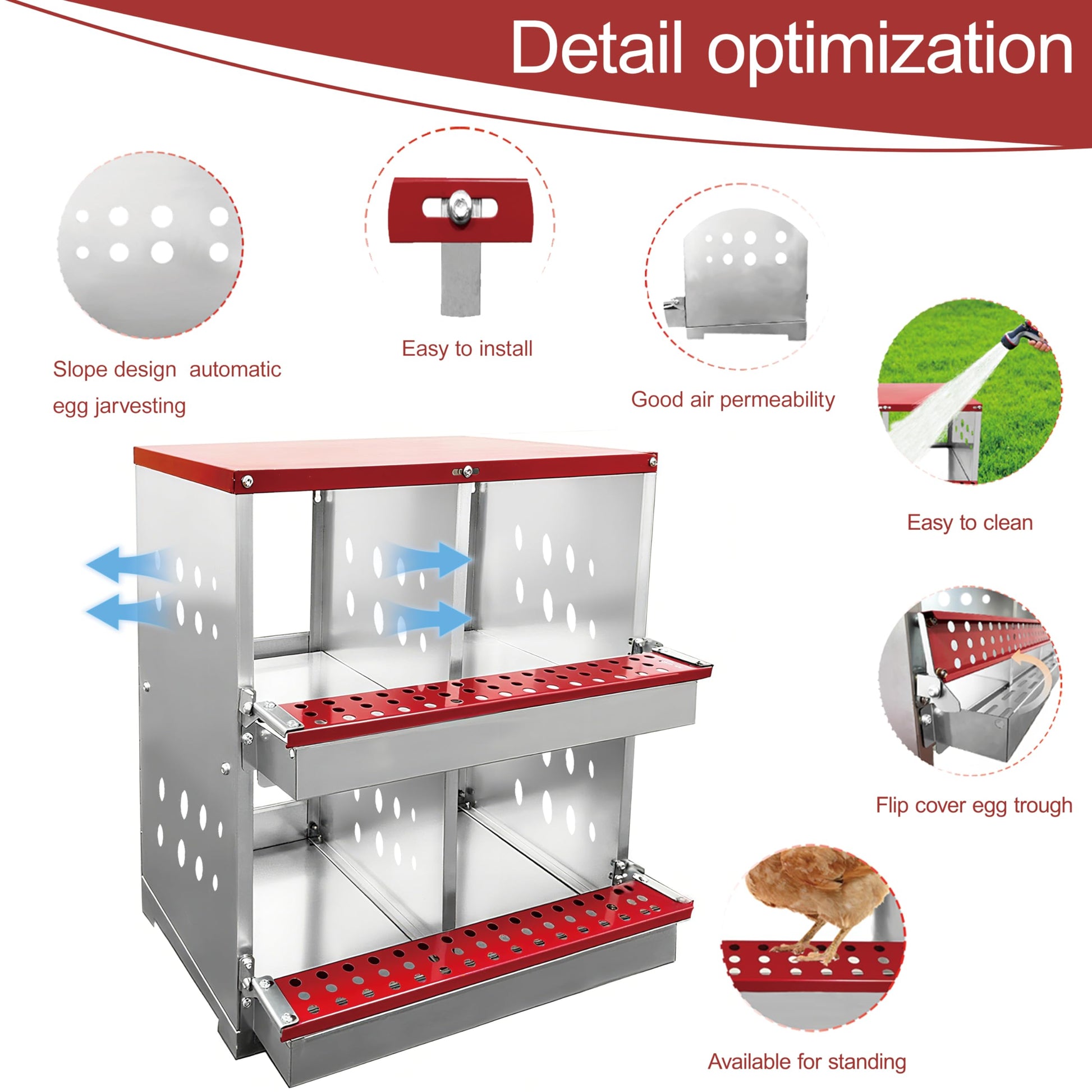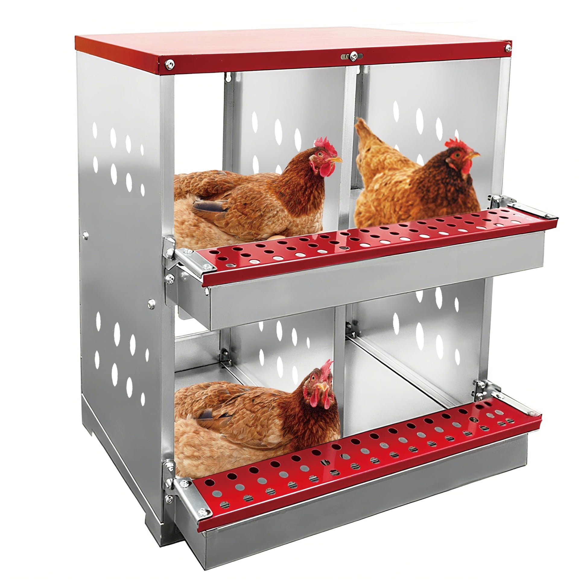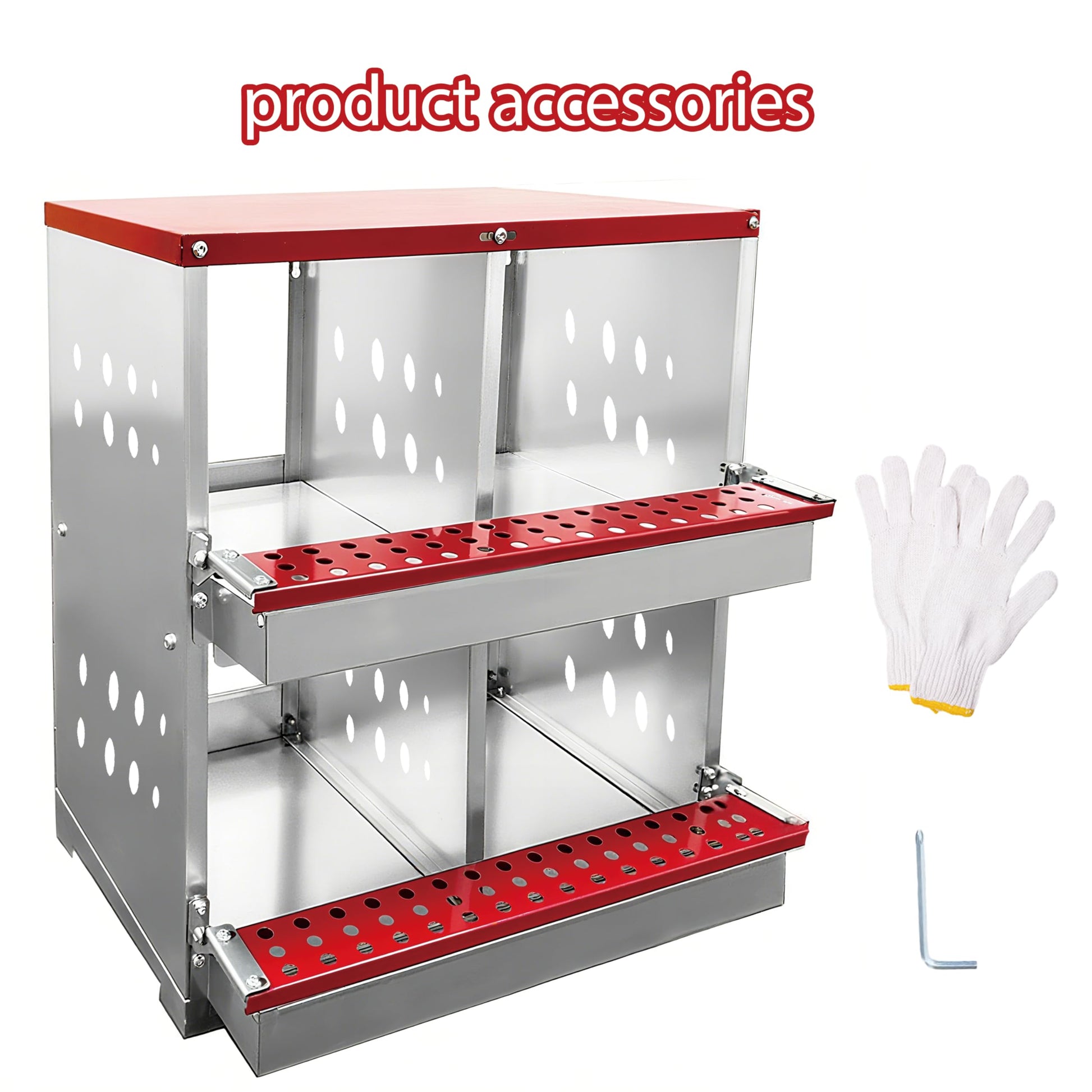 Designed for Lasting: The chicken nest is made entirely of galvanized sheet metal, which is sturdy and durable, with ventilation holes on the sides to ensure air circulation in the nest.