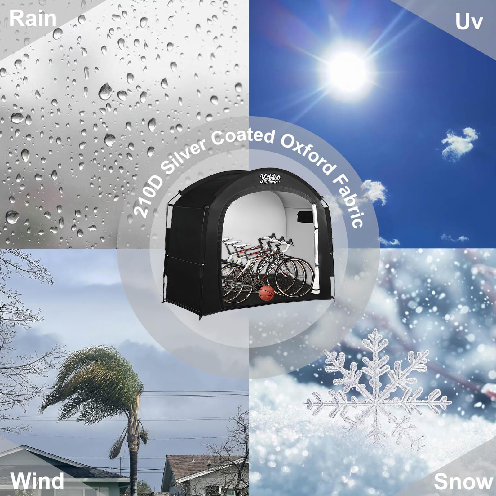 【Excellent Quality】: Made from durable 210D double silver-plated oxford fabric, this bike storage tent offers 4000mm waterproof protection and UPF 40+ UV resistance, ensuring your bikes are shielded from rain, snow, and harmful UV rays.