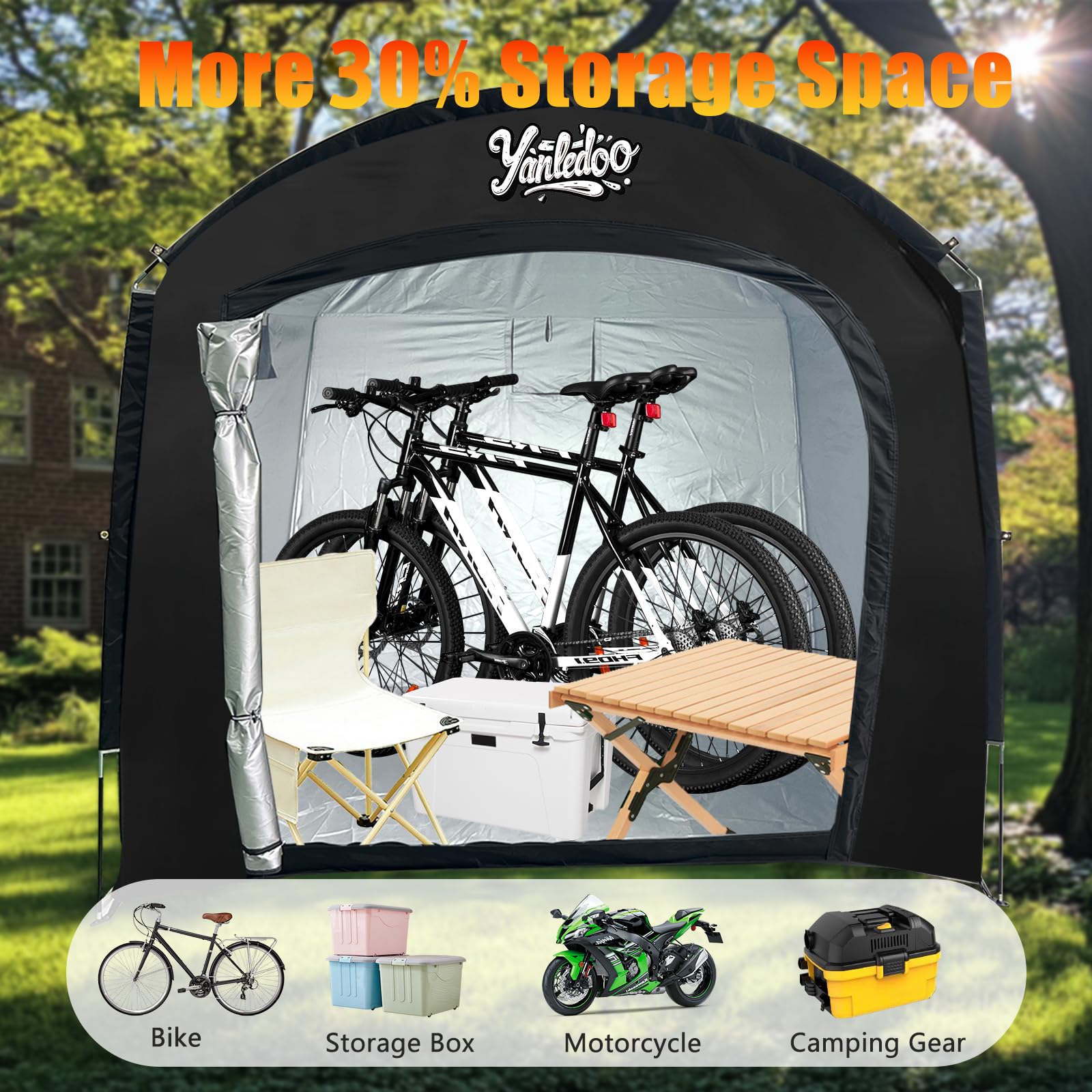 Yanledoo Bike Storage Tent, Outdoor Shed with Thick Waterproof Fabric, 30% More Top Space, Fits 2/3/4/5 Bikes or Tricycles, Easy Setup, Portable Cover for Garden Tools & Motorcycles