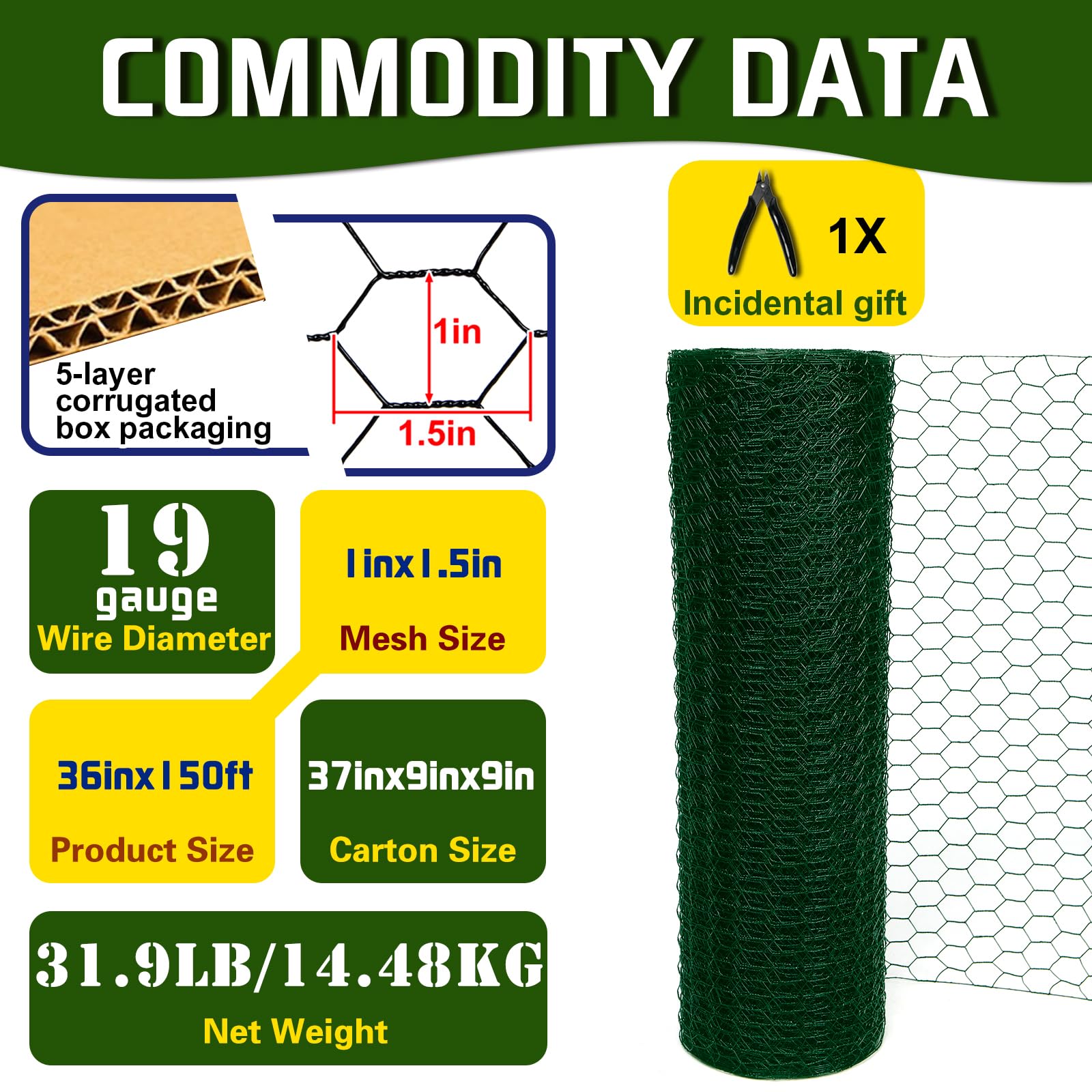 Kit with Chicken Wire Roll & Tools 36'W x 150'L chicken wire roll (1-inch mesh) comes with small cutters. Use this fencing as chicken wire fencing, galvanized chicken wire, or poultry netting for chicken coops (as chicken coop wire) right away—no extra buys.