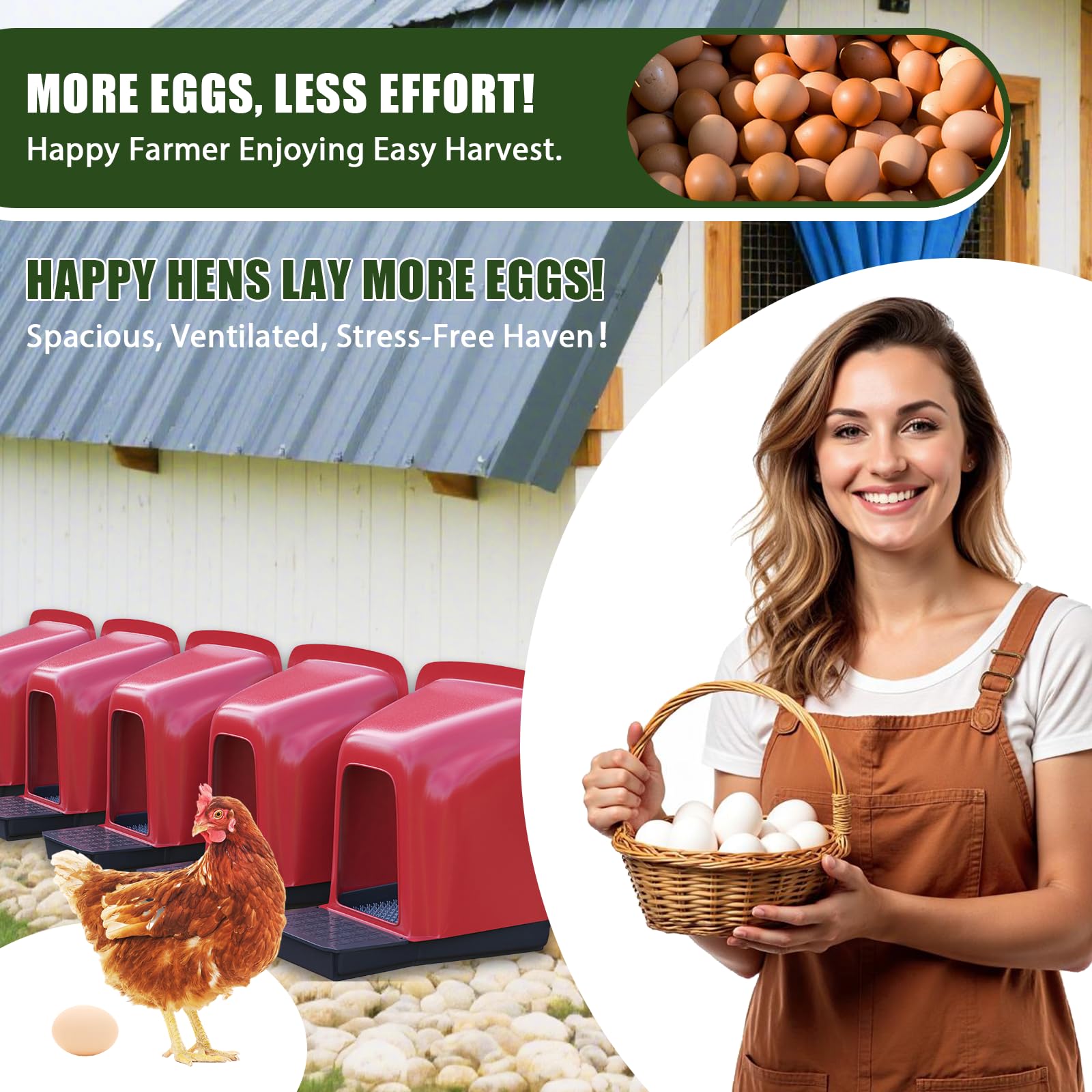 【Built to Last 】:Unlike wooden boxes, these ABS plastic chicken nesting boxes resist rot, corrosion, and decay. The sturdy construction supports heavy hens, while the roll-away system prevents egg-eating. A must-have for poultry farmers and backyard chicken keepers.