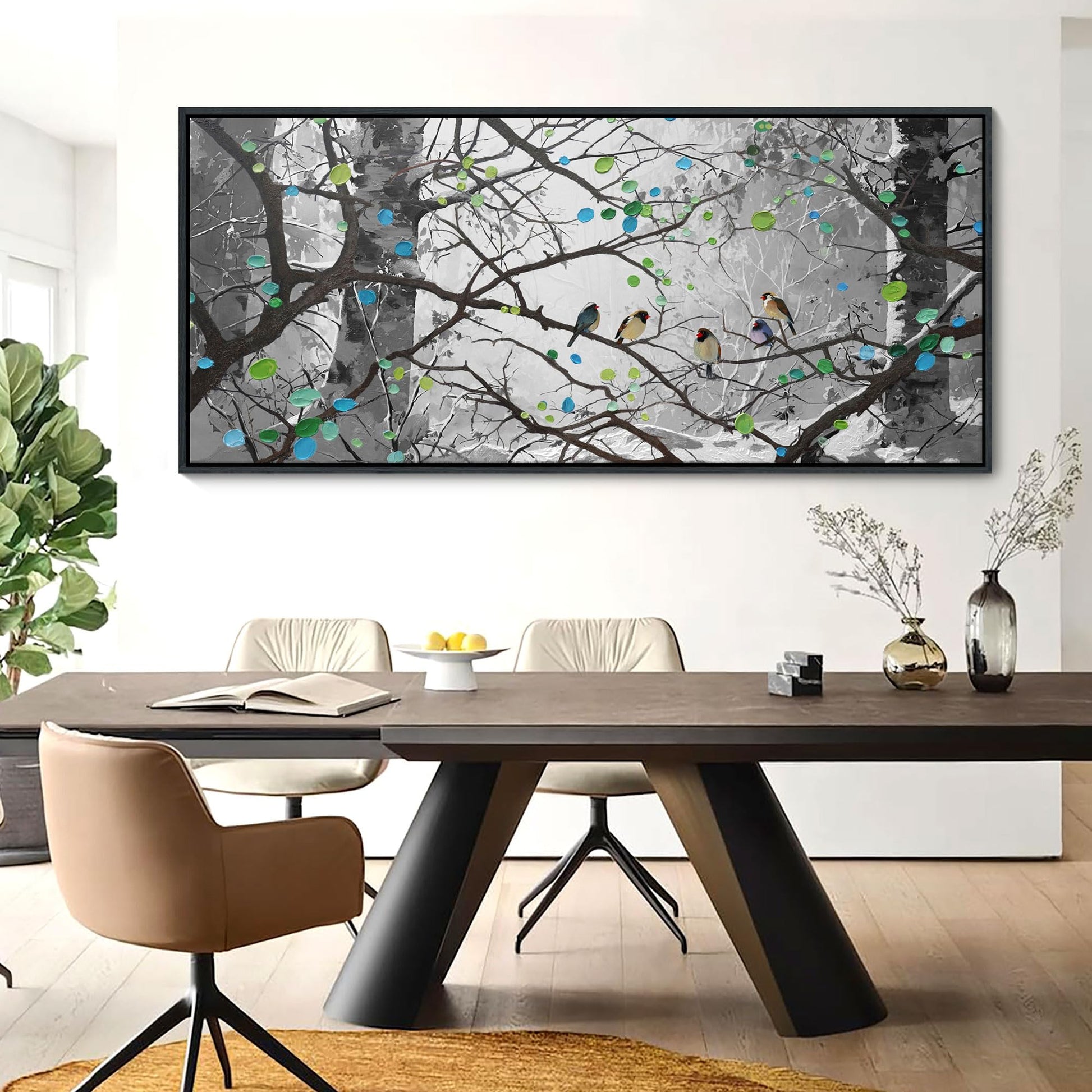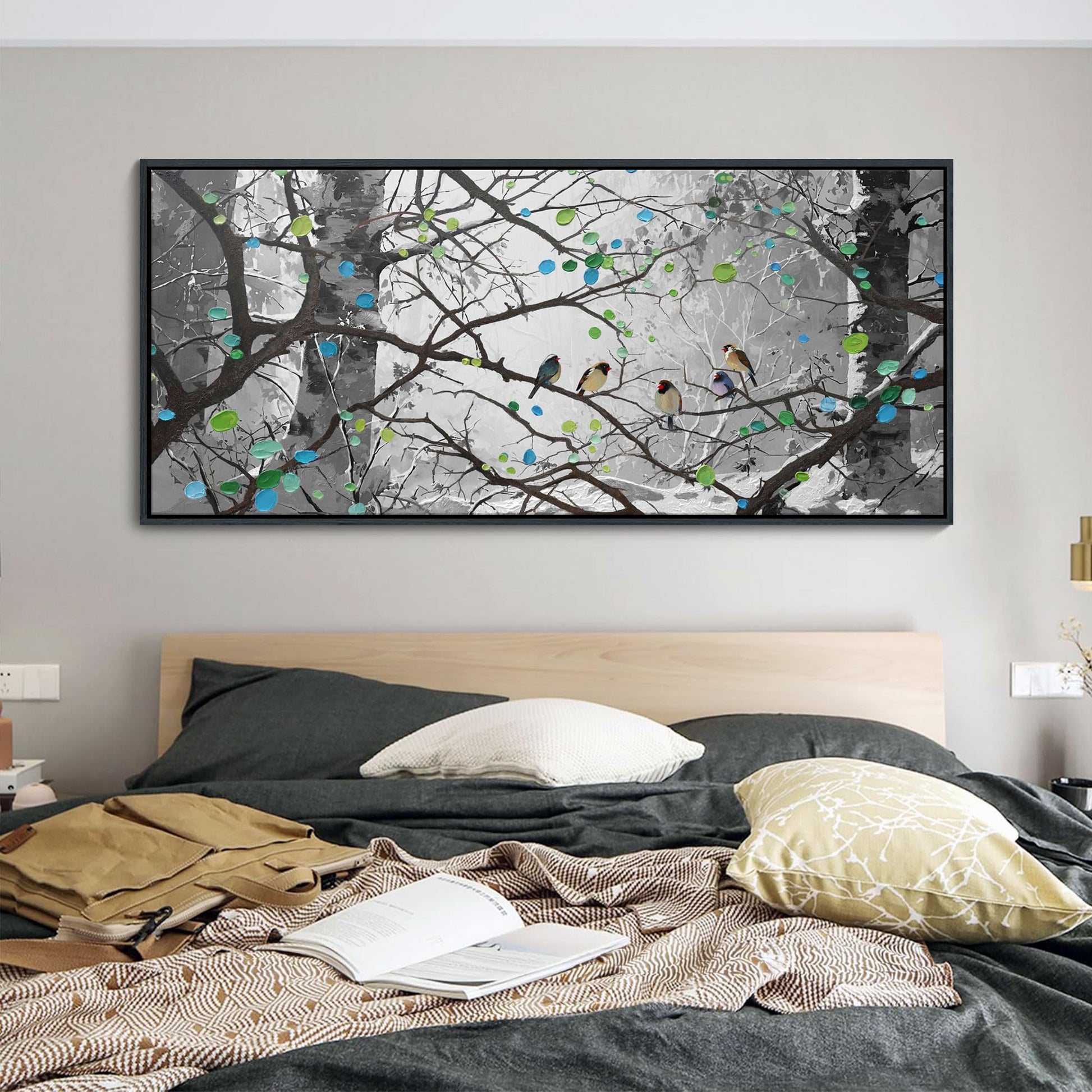 YCPRIMER Extra Large Grey Wall Art Bird on Branch Misty Forest Canvas Artwork Modern Framed Canvas Painting Decorative Home Decor Easy Be Hung Directly Dining Room Living Room Bedroom Office Size 70x31 Inches