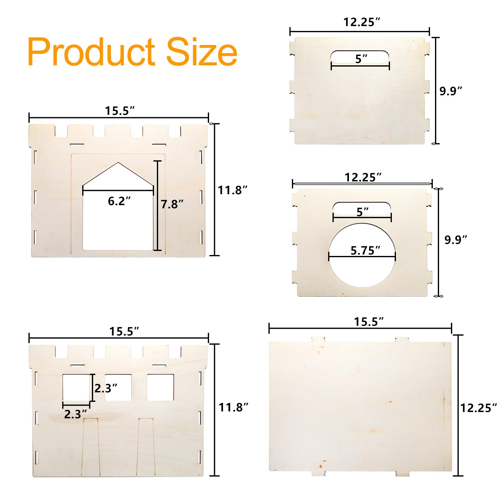 Yesland's Wooden rabbit hideout provide endless fun for your pets. The size of bunnies castle: 15.5” (L) x 11.4”(W x 11.8” (H), Entrance: 6.2” (W)x7.8”(H).