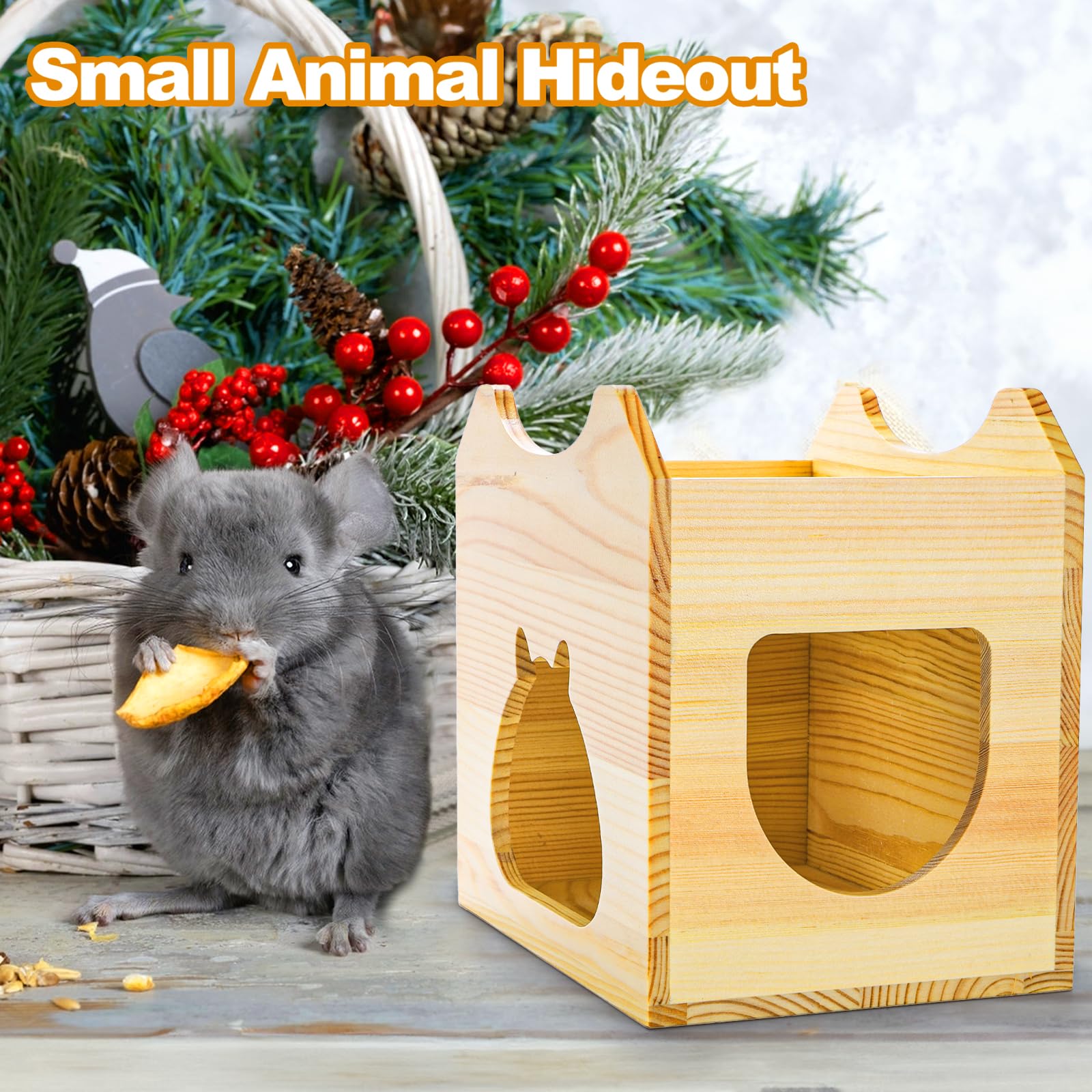 Made of natural timber, offering security and fun for chinchillas and small pets, dispelling boredom and promoting their well-being. Our small animal houses and hideouts are a quiet place for pets to hide, sleep, and relax.