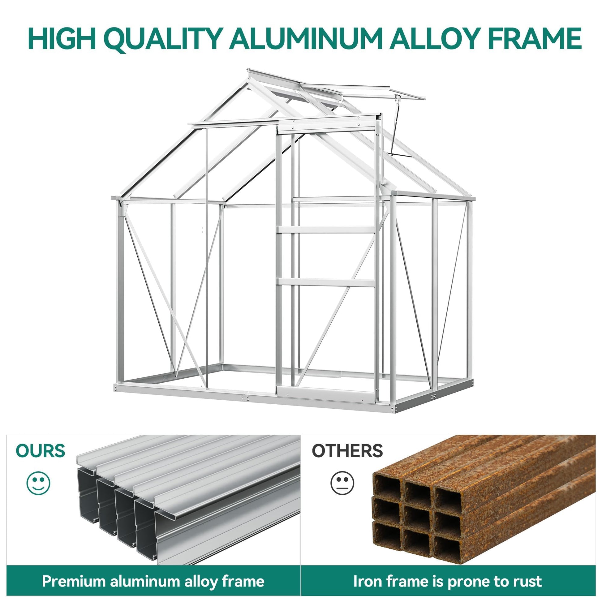 FIXATION MEASURES - We recommend placing the bottom frame in a pre-dug trench after securing the board with expansion screws (include) to the ground for greater stability and temperature chamber wind resistance; Recommended to apply glass glue to the connection between PC board and frame for better water protection; When the weather is bad, we recommend that the precious items in the greenhouse be removed to avoid unnecessary property loss and do not use greenhouse during the time