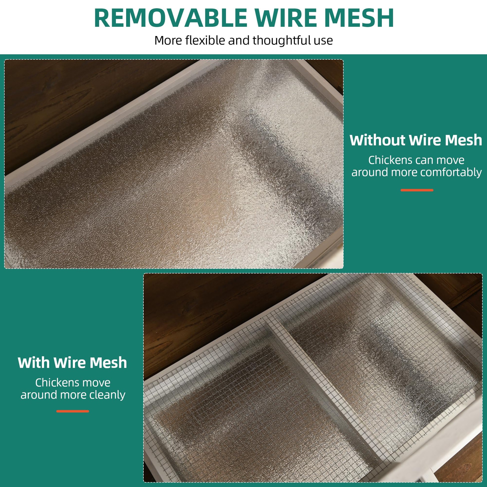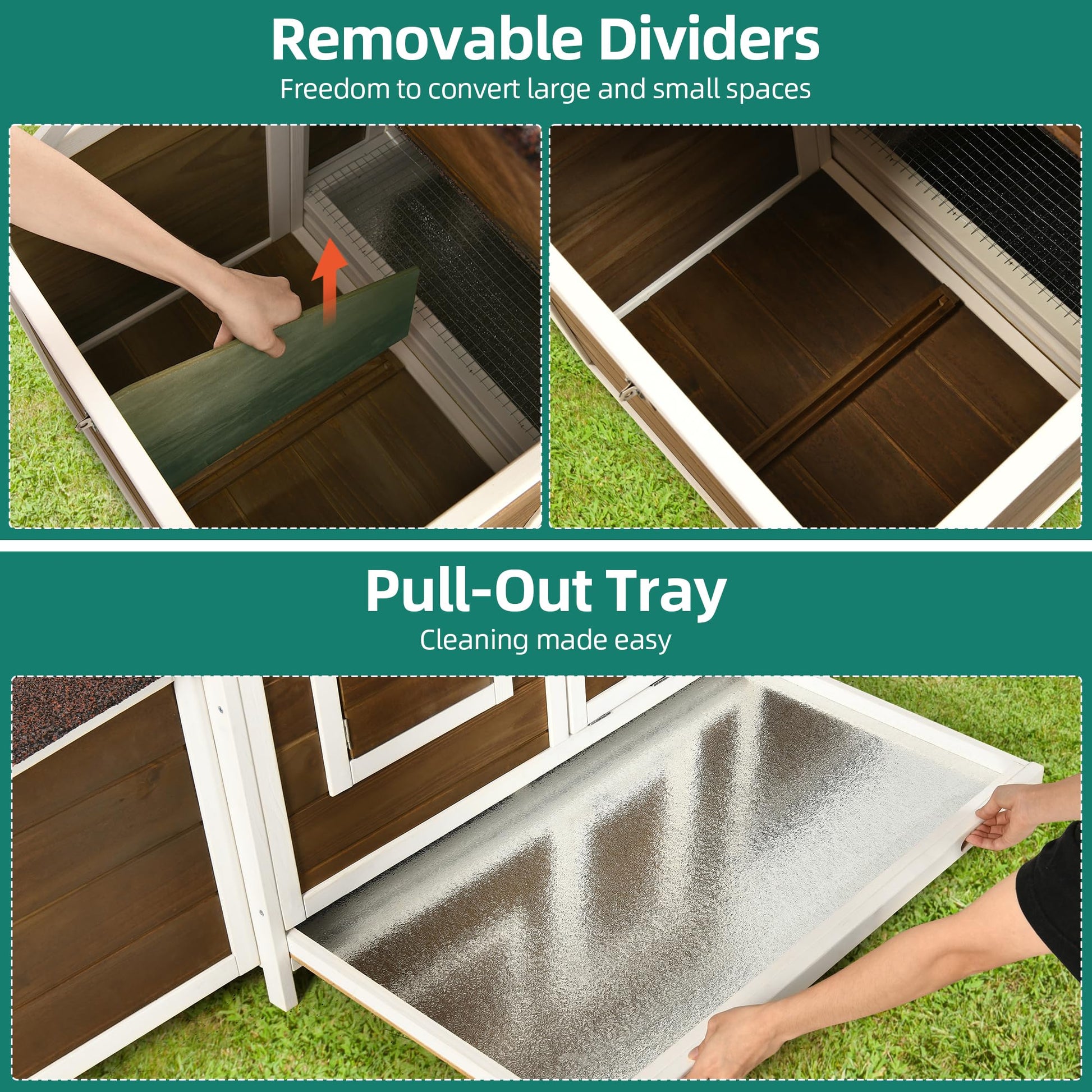 2 Large Nesting Boxes - Large nesting boxes on both sides provide spacious and comfortable laying space, and removable dividers allow you to freely combine the space inside the outdoor chicken pen.