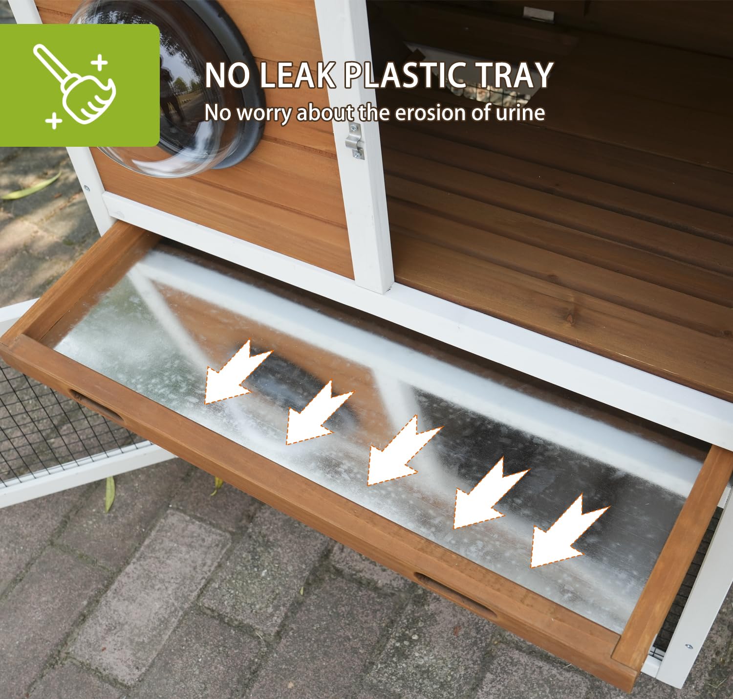 Durable & Safe Construction: Built with premium natural fir wood and coated with eco-friendly, waterproof varnish, YOPTO’s pet house ensures sturdiness and weather resistance. The galvanized tray and grid fences provide ventilation and protection from predators.
