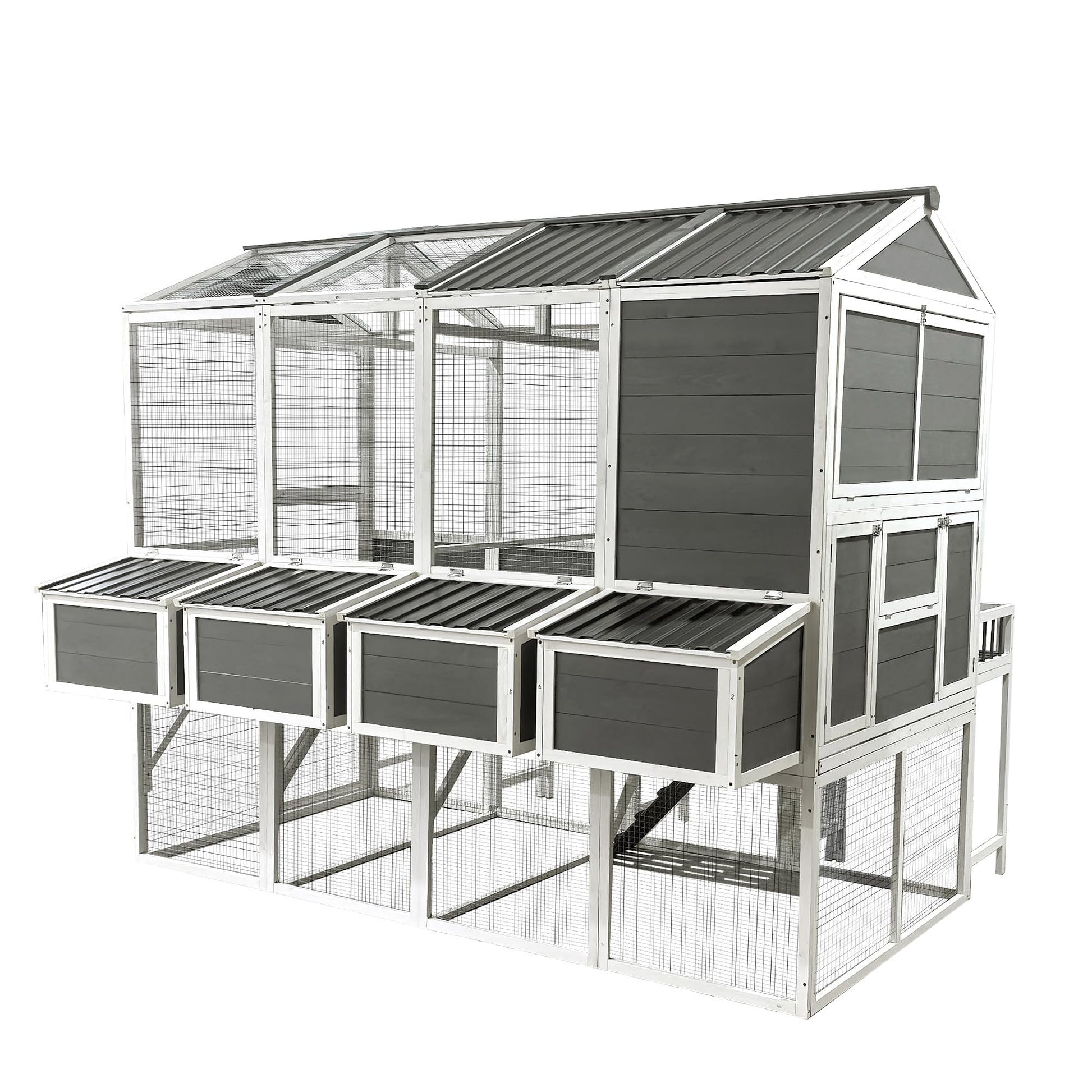 FOUR NESTING BOXES WITH ACCESSIBLE LIDS: YOPTO chicken coop is equipped with four side-mounted nesting boxes, each with an openable roof for quick egg collection. The cozy and enclosed design supports your hens' natural nesting behaviors while keeping eggs protected and easy to reach