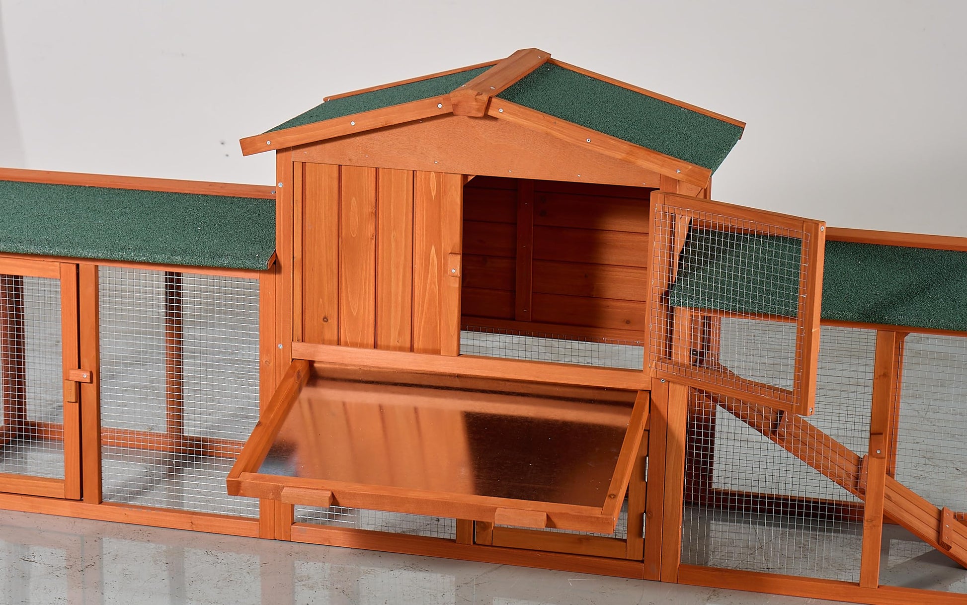 Sloped Asphalt Roof for Outdoor Protection: Equipped with a sloped asphalt roof, this outdoor chicken run shields your pets from rain, sunlight, and harsh weather conditions. It makes the hen house stays dry and protected, keeping your poultry cozy in various outdoor environments.