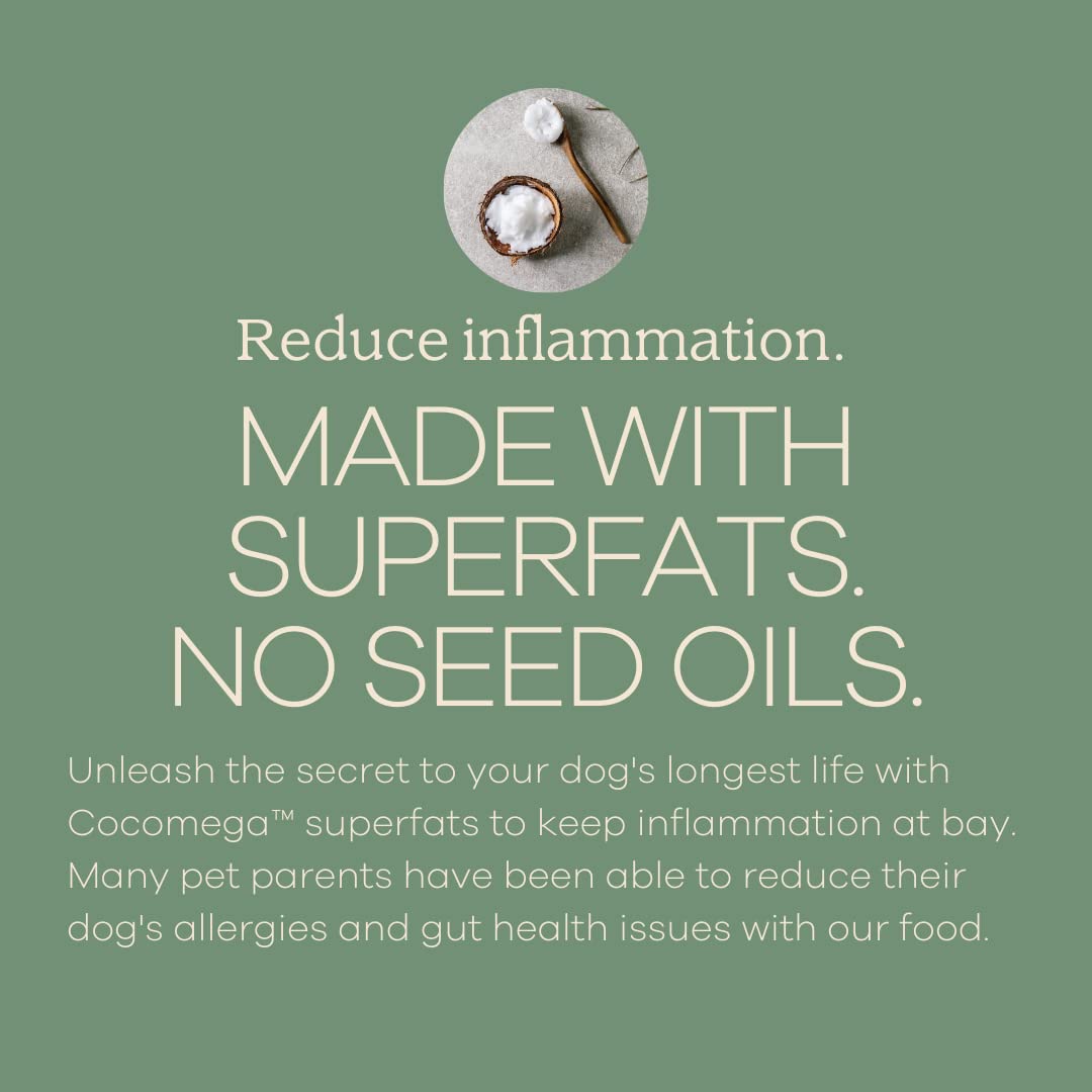 SUPERFATS, NO SEED OILS: Unleash your dog's longest life with Cocomega superfats backed by research to keep inflammation at bay.