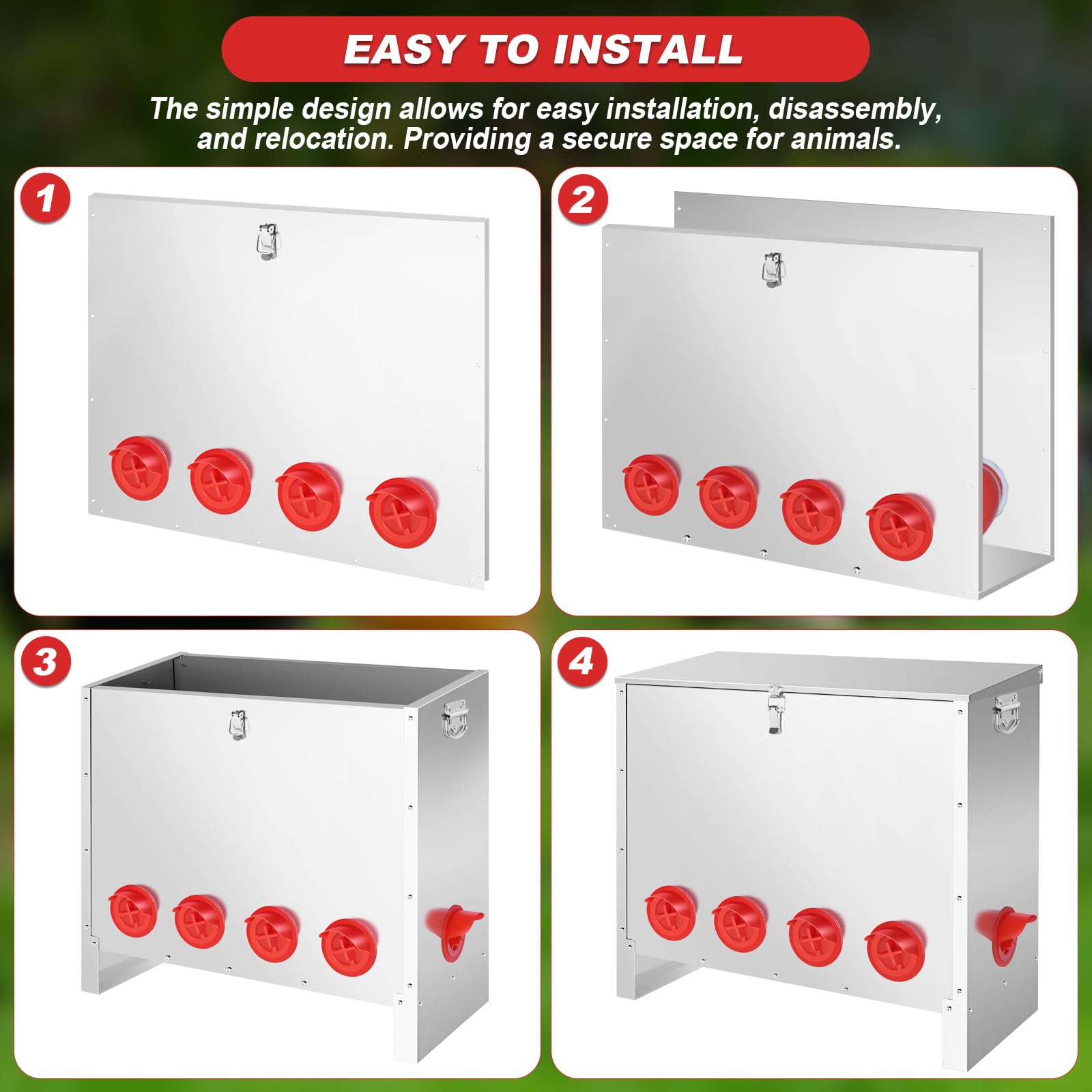 Easy to Install and Use: We come with all screws and nuts for easy installation. The wide opening makes it easy to fill the feeding box with your choice of feed, while the smooth interior surface facilitates quick and hassle-free cleaning