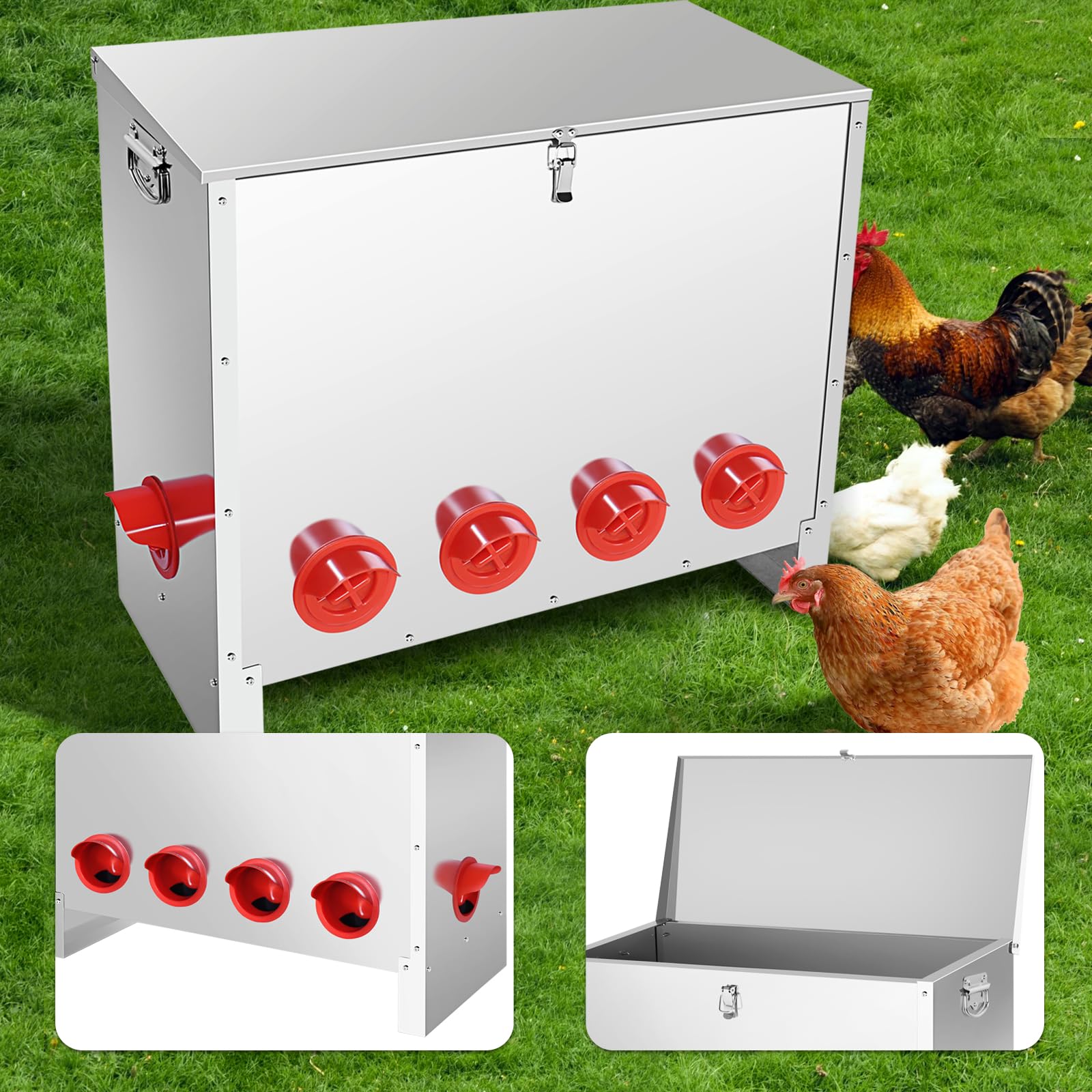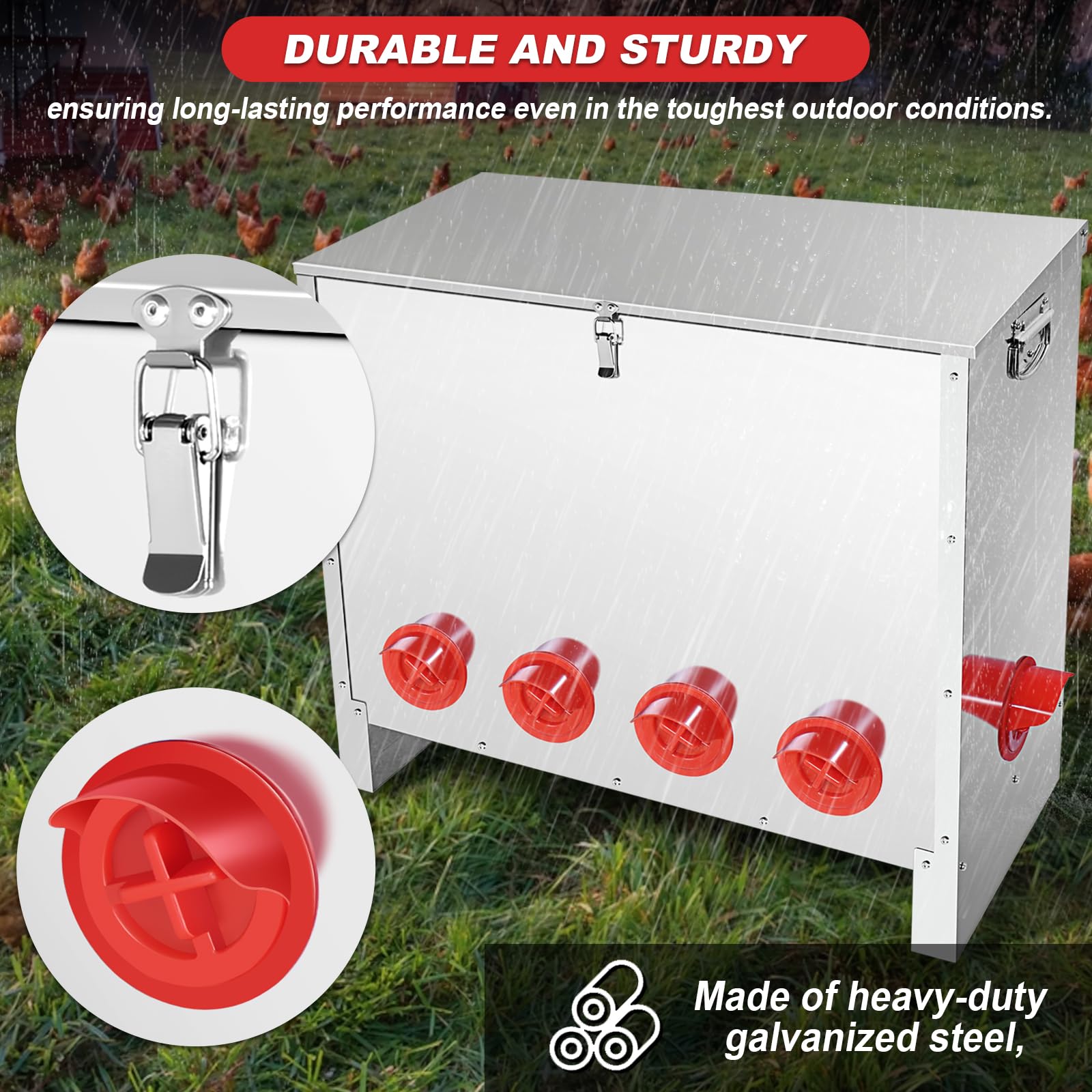 Sturdy and Durable Construction: Our metal chicken feeder is made of heavy-duty galvanized steel and features powder coating that resists rust and corrosion, ensuring long-lasting performance even in the toughest outdoor conditions