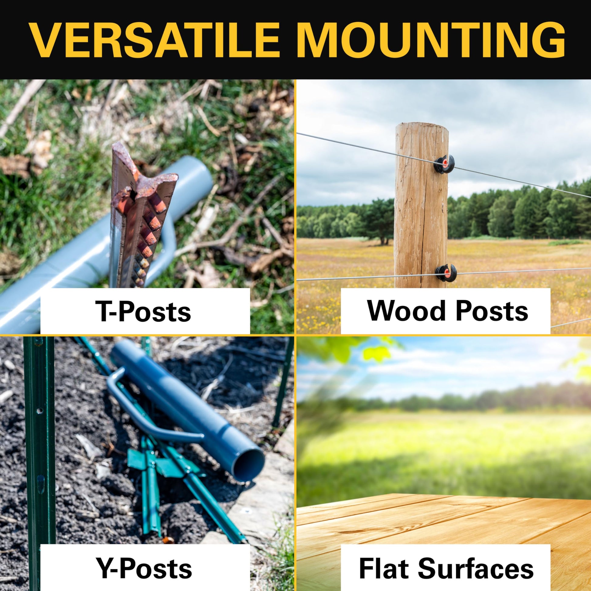 VERSATILE INSTALLATION: This solar electric fence energizer features a built-in mounting bracket for T-posts, Y-posts, and round-wood posts