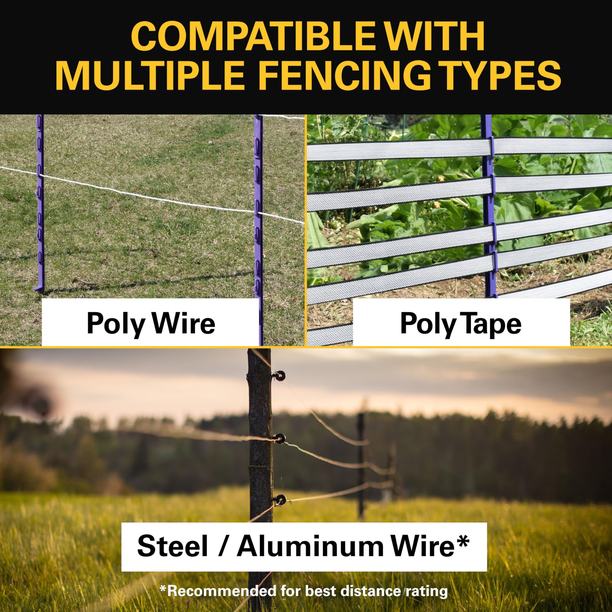 BUILT IN THE USA: Electric fence for livestock is full-load tested in the U.S. after manufacturing - 1-Year Limited Warranty including lightning damage