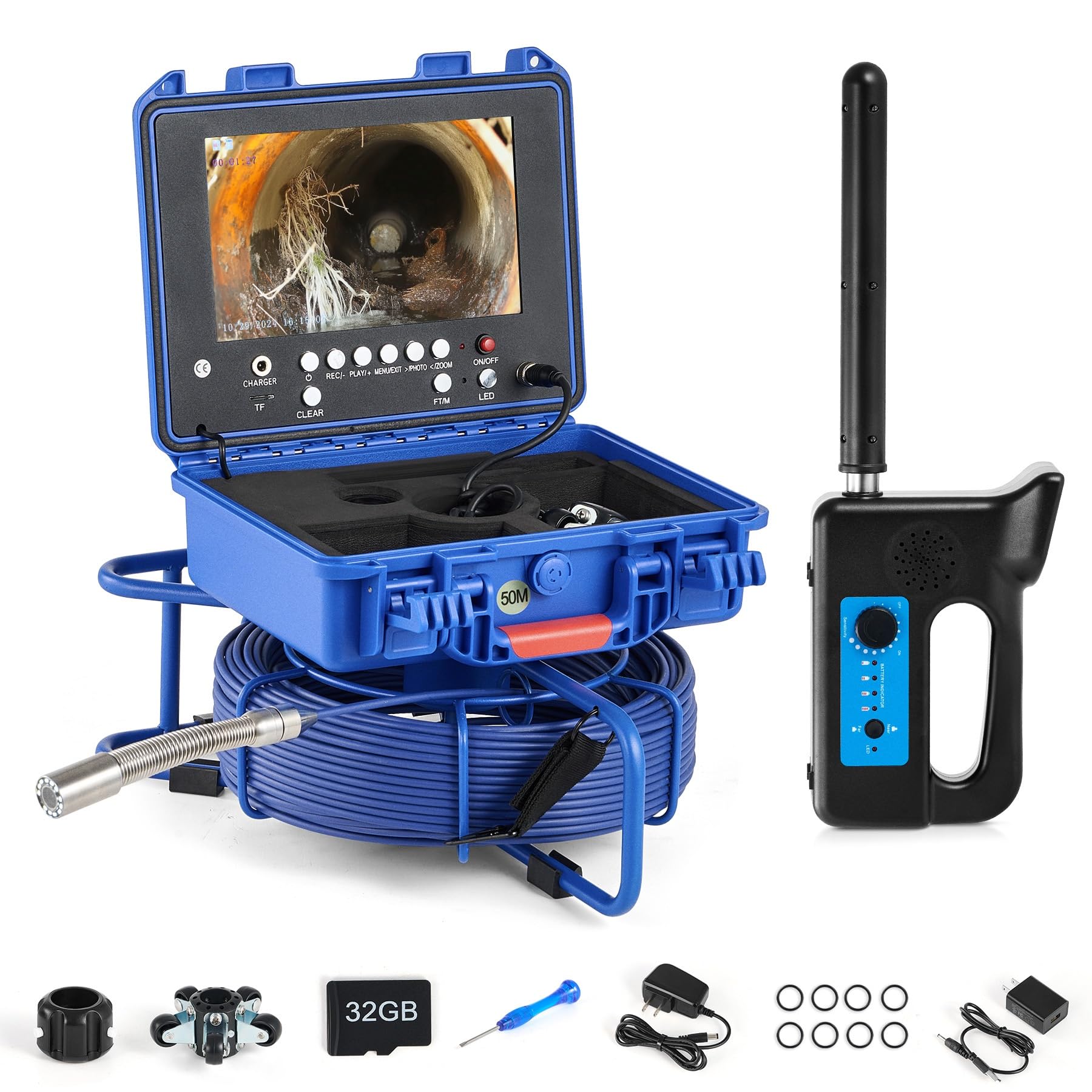 ZELCAN Self-Leveling Sewer Camera with Locator, Drain Camera 165FT with 9 in. LCD Screen, Waterproof IP68 Borescope Plumbing with 12 LED Lights, with 512Hz Transmitter and Receiver(32GB Card)