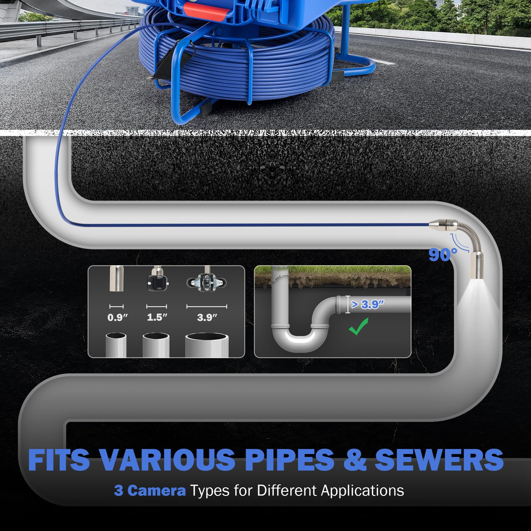 164 ft. Extended Cable: With a 164 ft. fiberglass cable featuring digital length counter, this sewer inspection camera lets you easily track the distance during inspections. The included portable reel makes storing and handling the cable convenient
