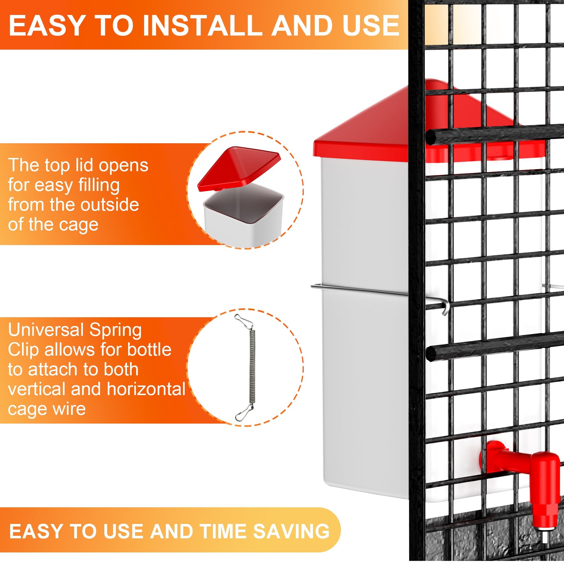 EASY TO INSTALL: We come with a U-shaped fixed steel clip and a wire spring clip. It can be used to fix the inside or outside of the cage, very convenient