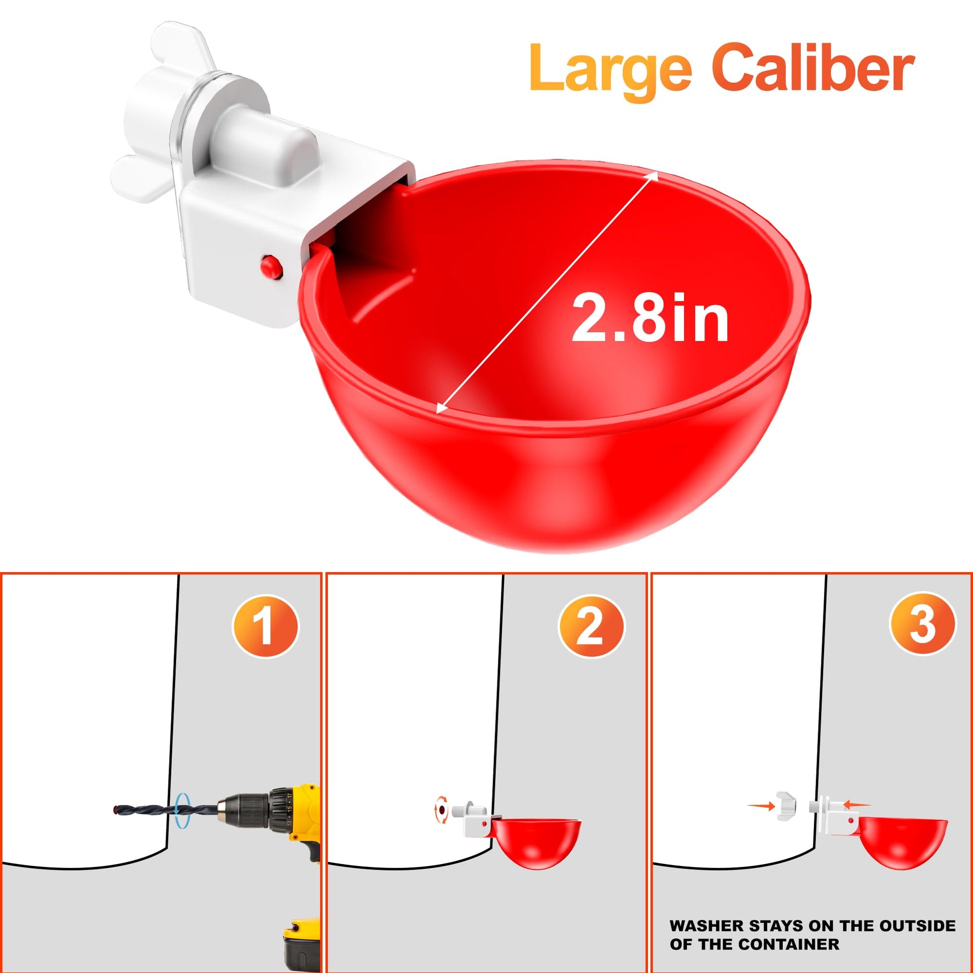 Perfect Size: Each water cup has a diameter of nearly 2.8 inches, allowing chickens and ducks to easily access water with their beaks