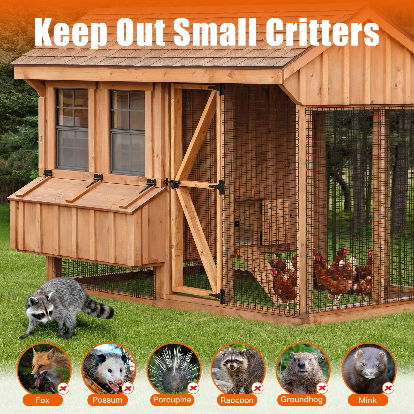 【1/2inch Opening】The black welded wire fence adopts 16 Gauge 1/2inch opening, effectively protecting your chickens from other carious animals! And the 48"x100' size hardware mesh is great for animal cages, garden fences, vegetable garden fences, and chicken coop fences.