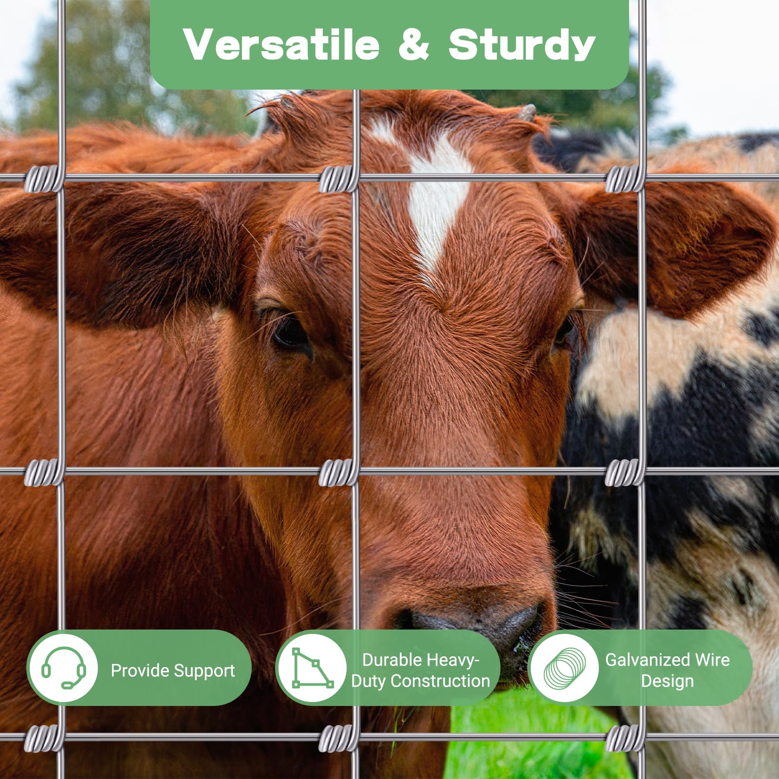 【13-Gauge Heavy Zinc Design】The fence is woven from 13-gauge heavy steel zinc (Enhanced Hardness) wire with a hot-dip galvanized surface. Our cattle fence has 4 twisted joints for increased durability. It can withstand various weather conditions making it suitable for farms, gardens and fields.