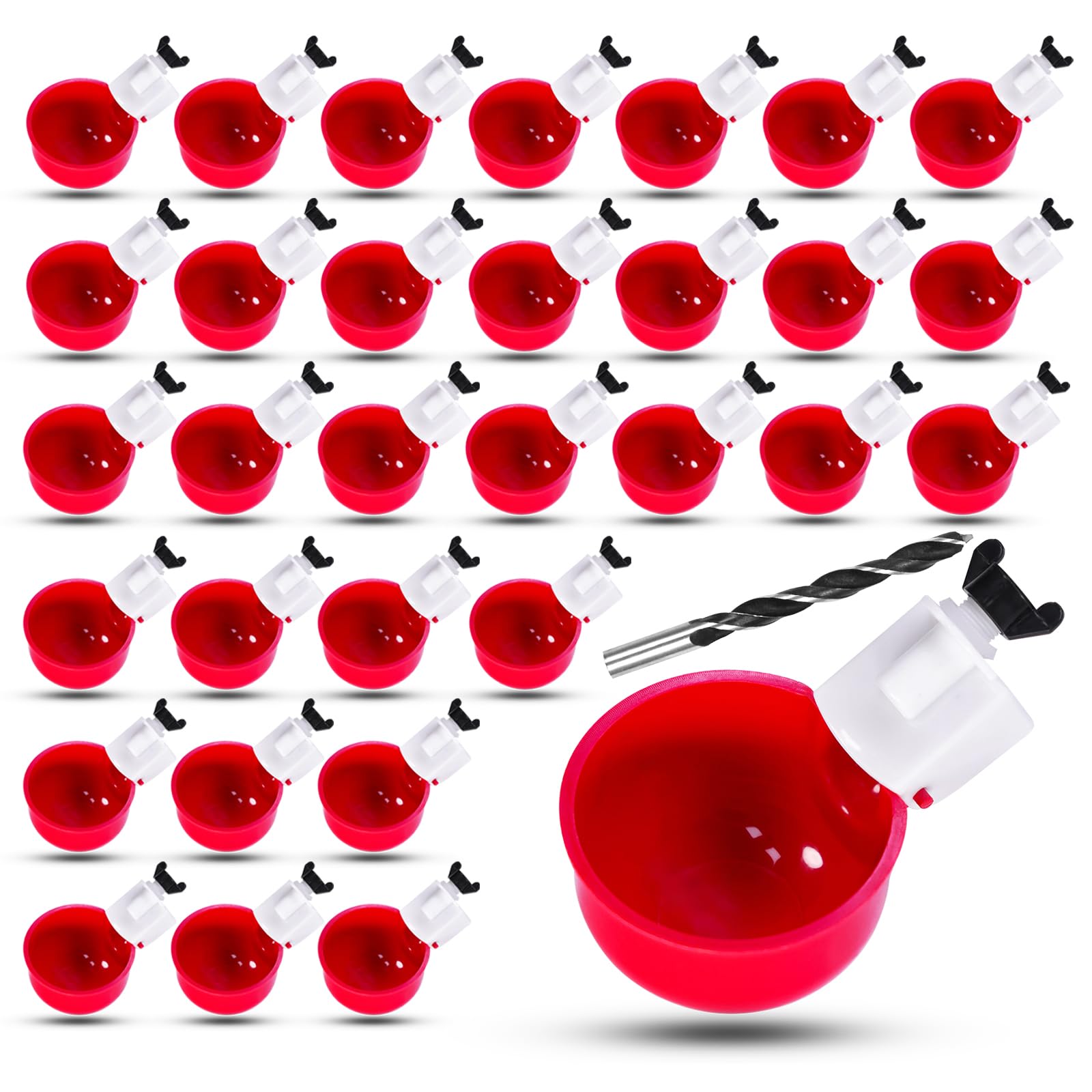 ZKZDSH 32 Pack Automatic Poultry Chicken Waterer Drinker Cups for Water Bucket DIY Automatic Chickens Coop and Ducks Water Dispenser Feeder Kit bebederos para gallinas with Mounting Hole Opener