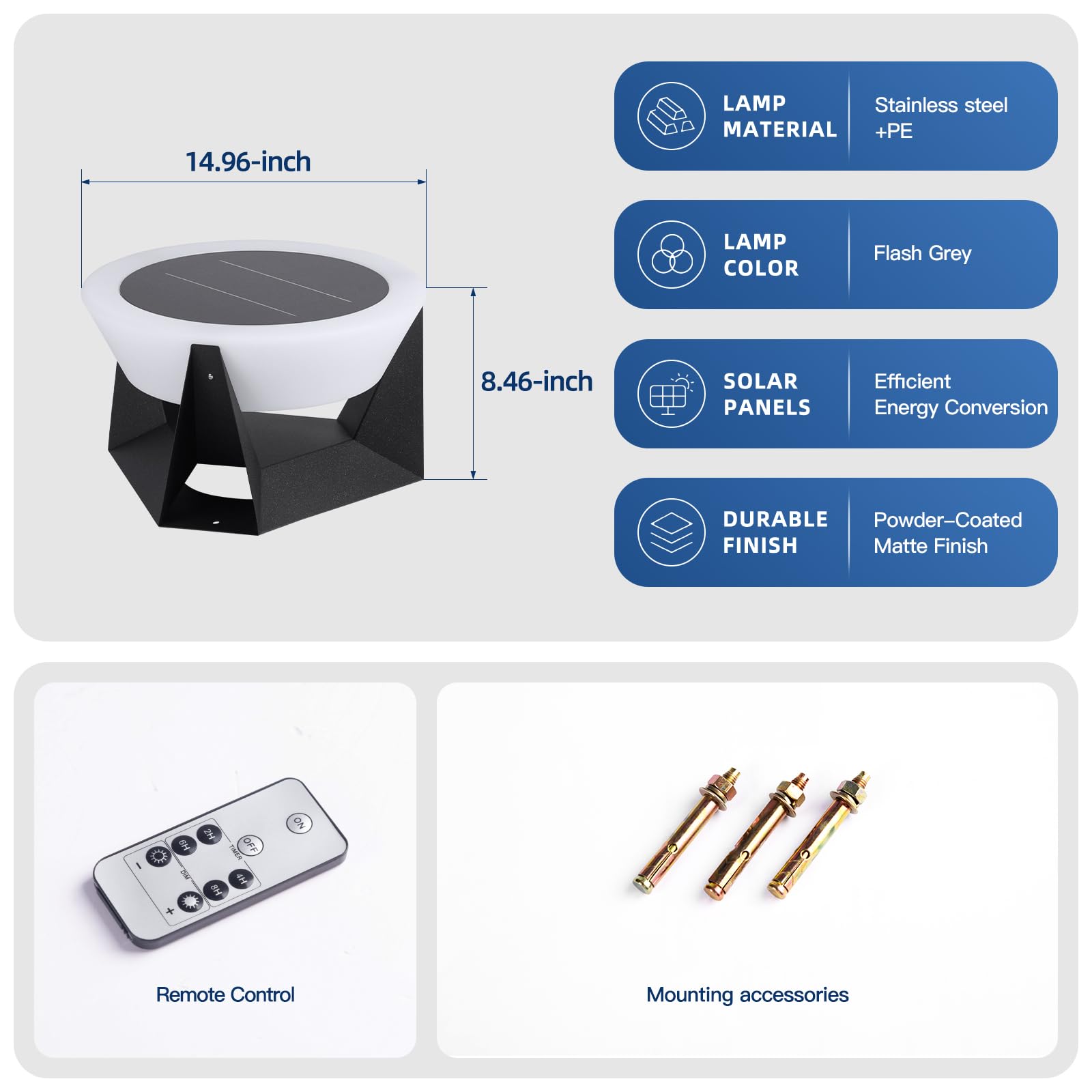 • Remote Control and Adjustable Brightness​​: Wireless remote included and User-friendly; Adjustable solar column light deliver 3000K warm white; Ra>80 high color accuracy enhances patio